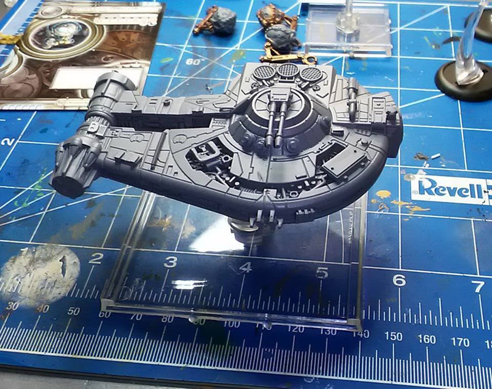 Habe mich an einem YT-1300 leichten Frachter, besser bekannt als Millenium Falcon. Nachdem ich mich stundenlang, zig verschiedene Varianten des Schiffes angesehen, bis mir endlich ein Licht aufgegangen ist.