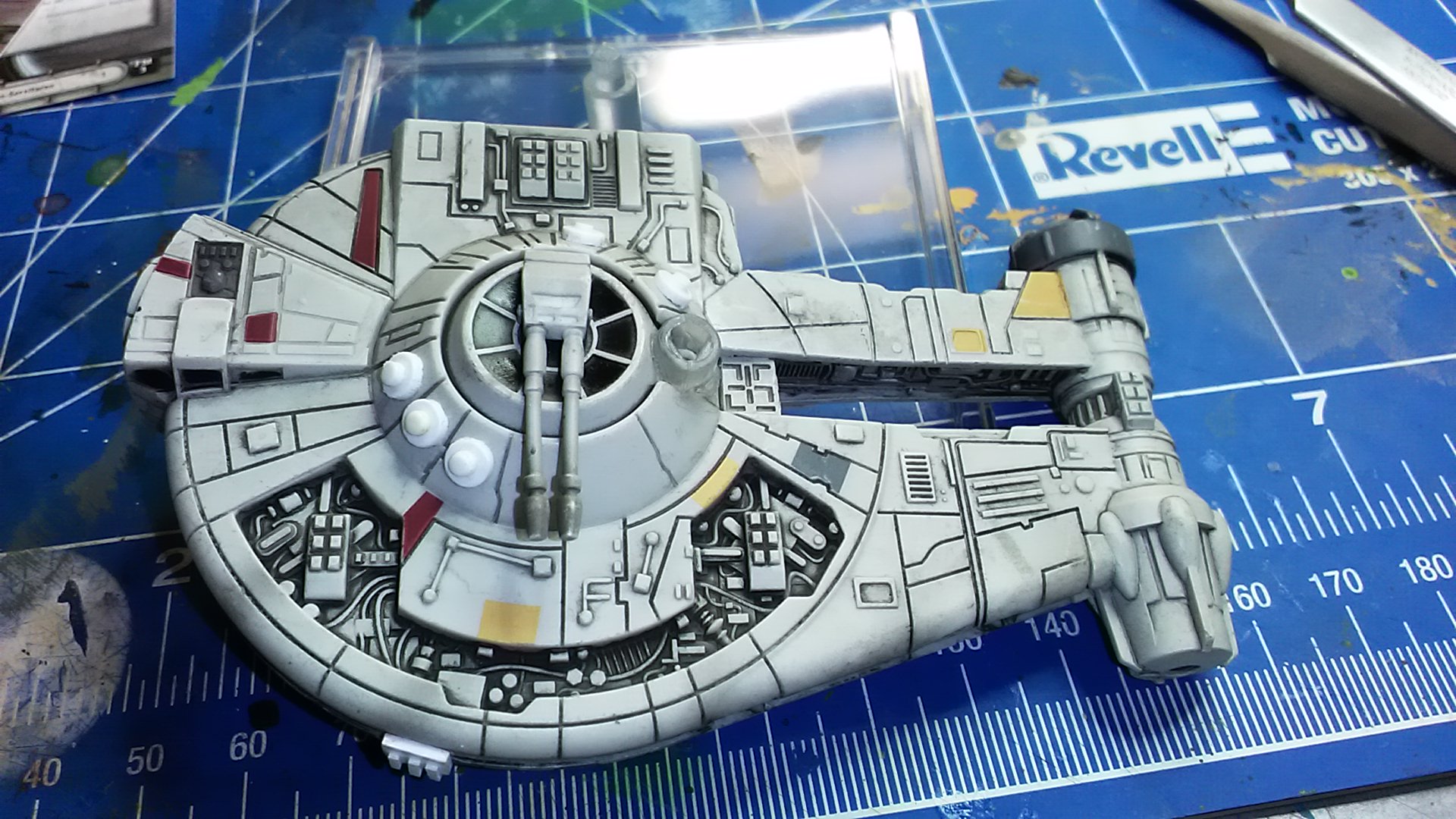 Habe mich an einem YT-1300 leichten Frachter, besser bekannt als Millenium Falcon. Nachdem ich mich stundenlang, zig verschiedene Varianten des Schiffes angesehen, bis mir endlich ein Licht aufgegangen ist.