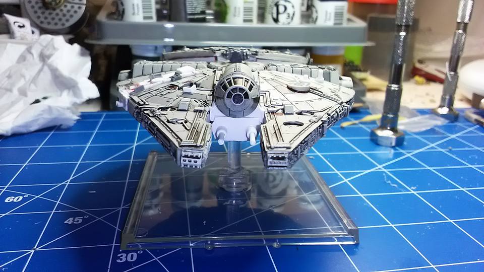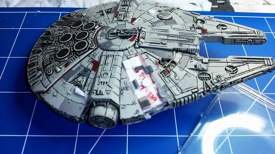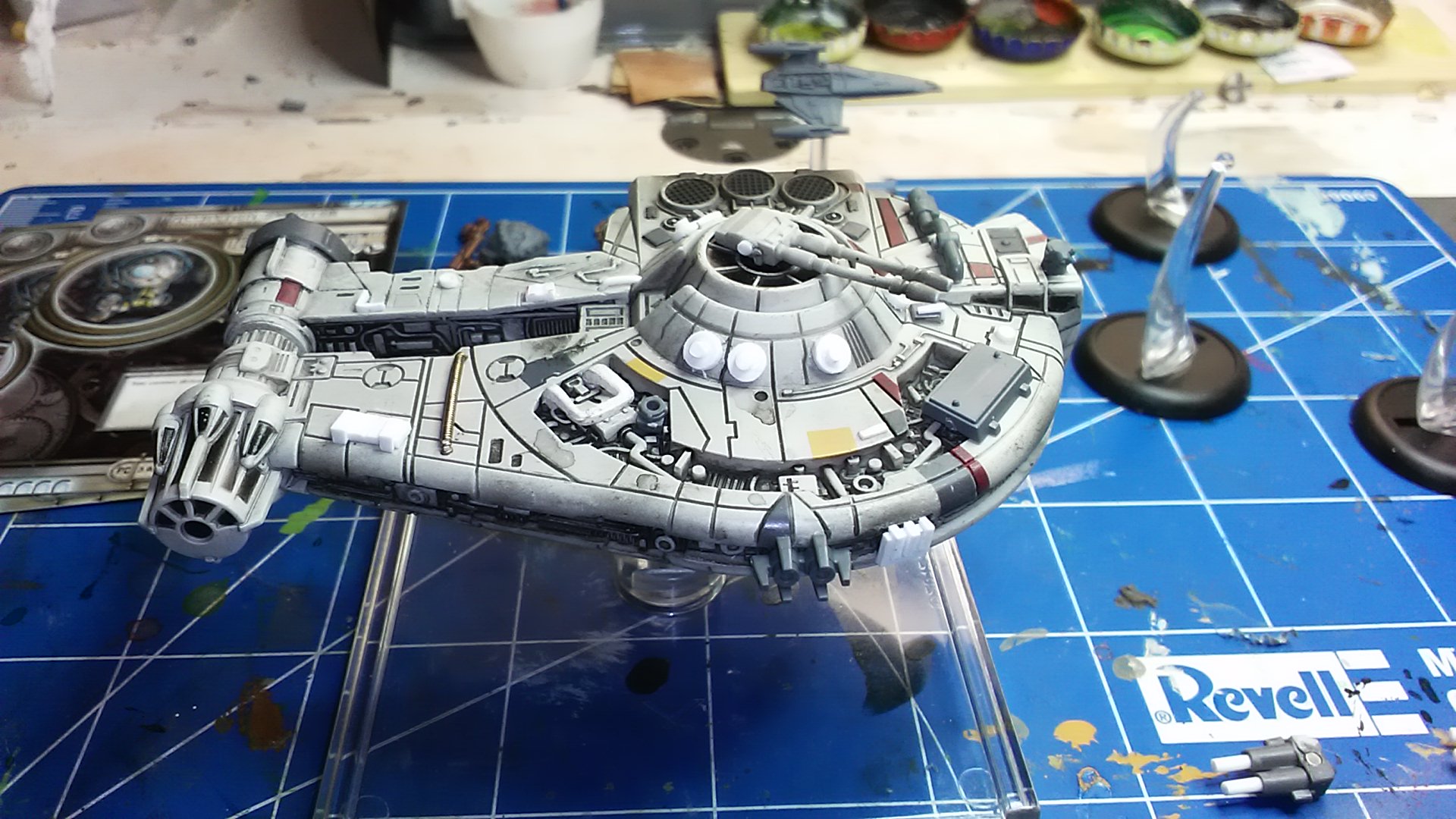 Habe mich an einem YT-1300 leichten Frachter, besser bekannt als Millenium Falcon. Nachdem ich mich stundenlang, zig verschiedene Varianten des Schiffes angesehen, bis mir endlich ein Licht aufgegangen ist.