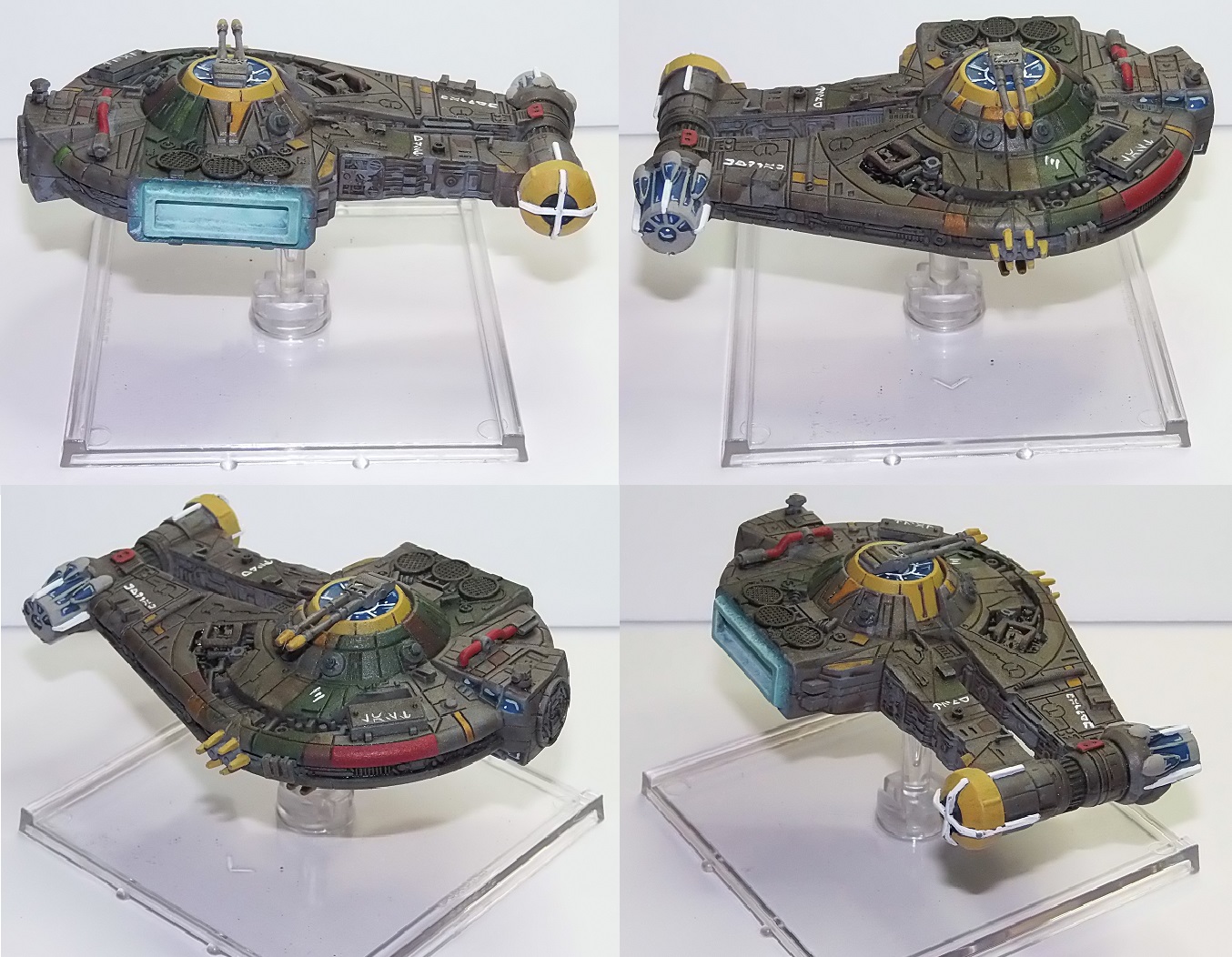 Die markantesten Umbauten sind wie man gut erkennen kann, sind das Cockpit, Triebwerke und Frachtsektion. Ebenso der Geschützturm wurde magnetisiert und die Sensorschüssel durch eine Sensorenphalanx ersetzt...