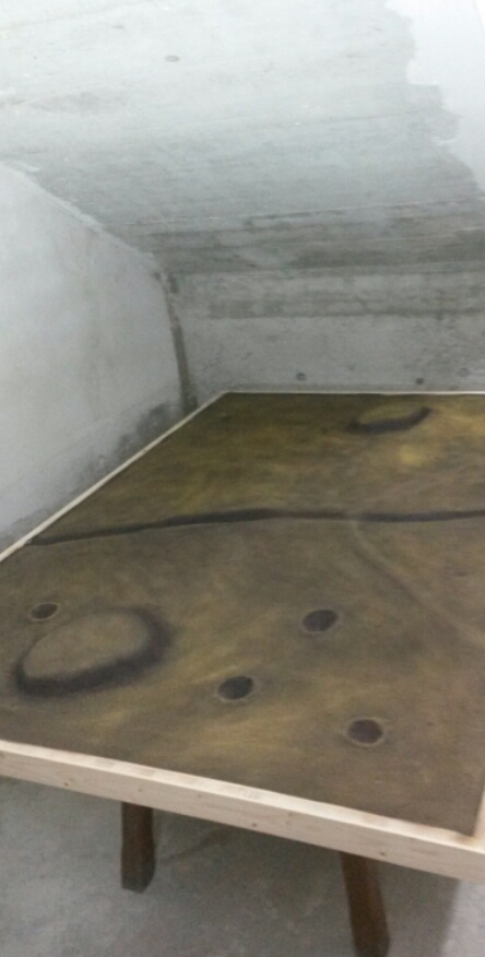 Die Platten wurden dann mit Silikon auf die Spanplatte geklebt und zum Trocknen mit Dachziegeln beschwert :rabbit:
