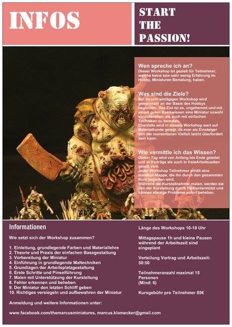 für alle die gerne den richtigen Einstieg ins Hobby, Miniaturenmalen erleben möchten, ist das die Möglichkeit. Hier lernt ihr die Basics über Farben, Techniken und material.