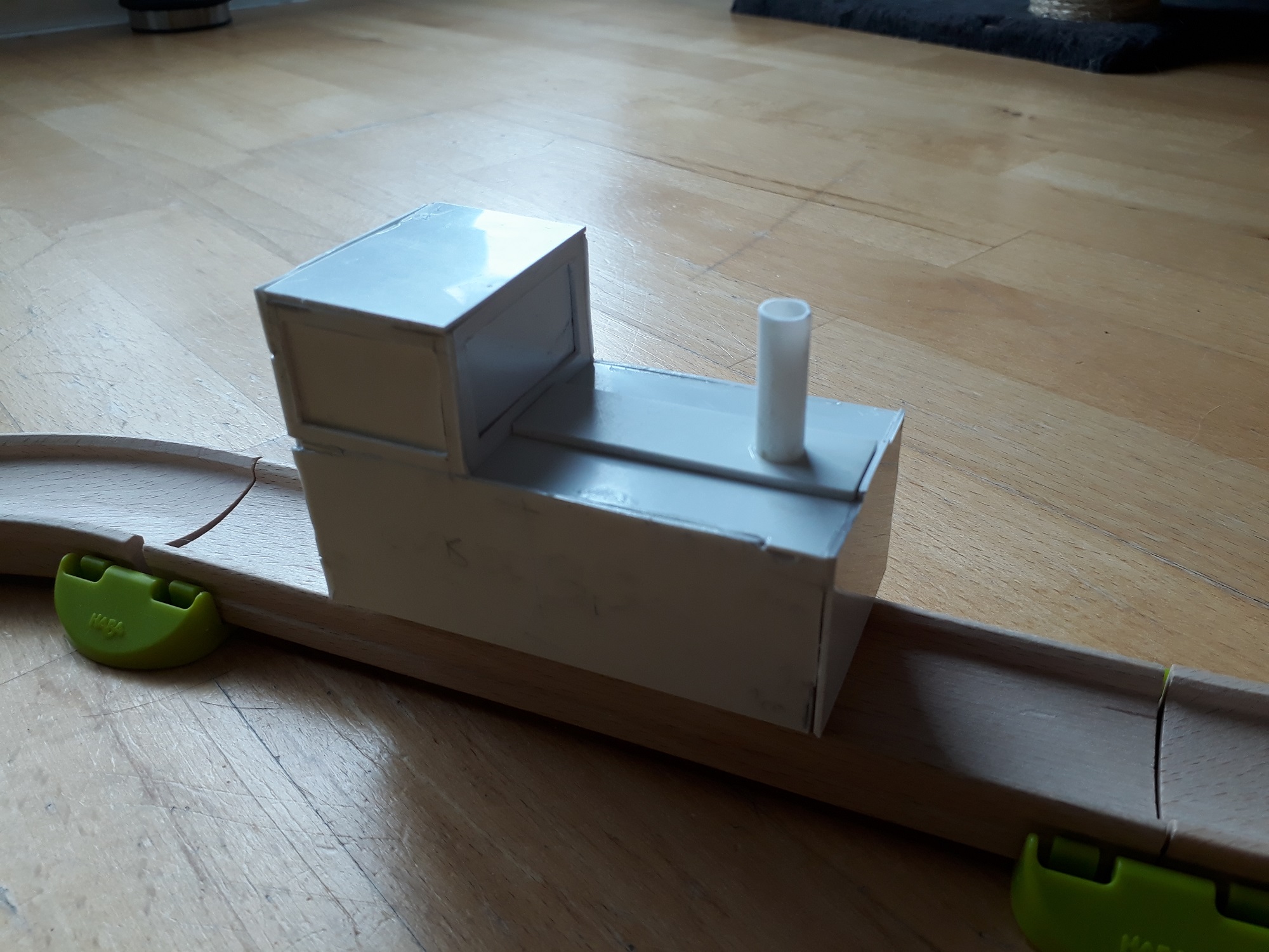 Mein Sohn wird bald 2 Jahre alt, ich hab ihm für seine Kugelbahn einen Zug aus Plastic Card gebastelt. Der Clou dabei: es passen zwei Kugeln "in" den Zug hinein, sodass er sich dann über die Kugelbahn schieben lässt