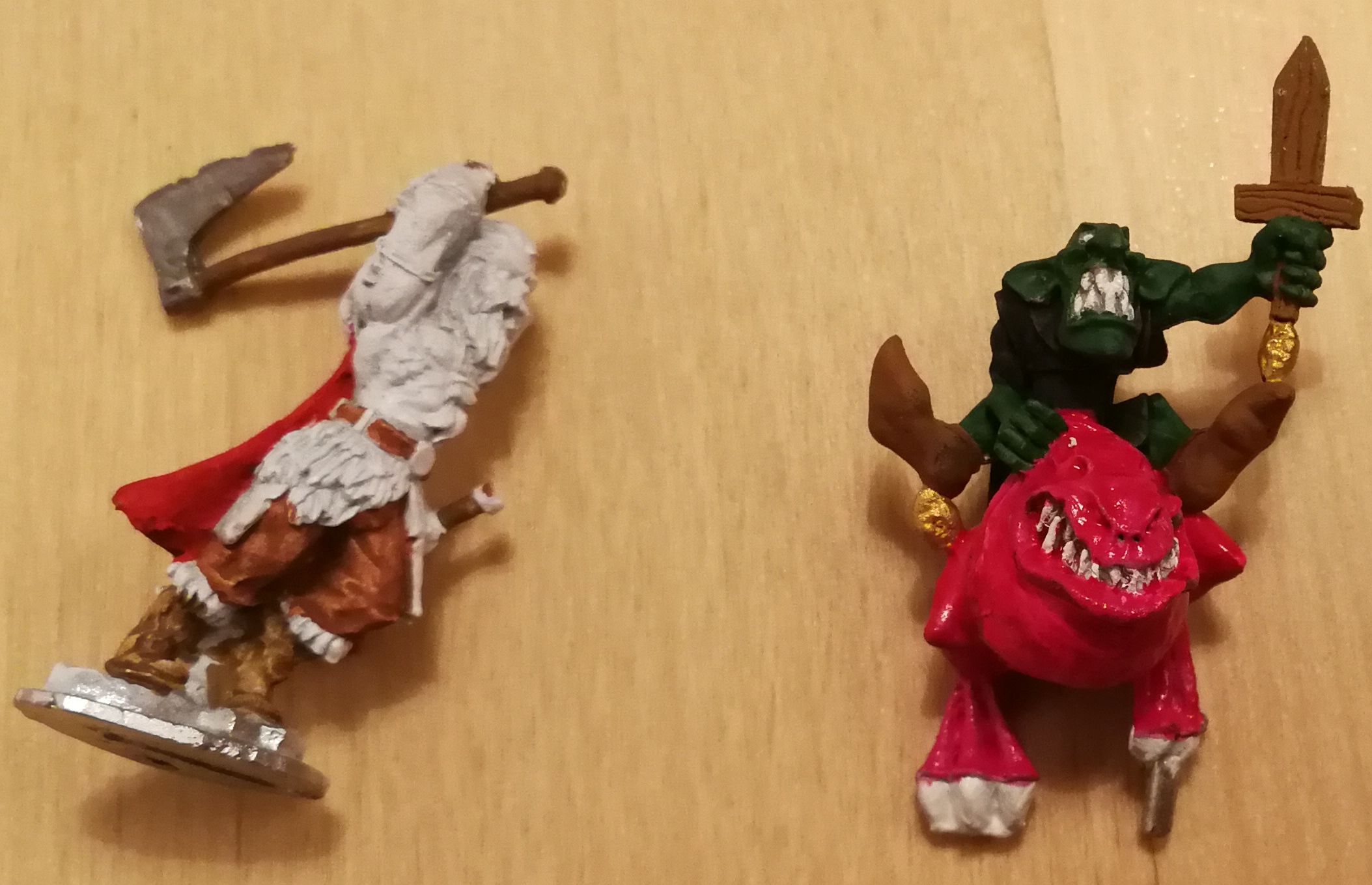 anbei außerdem aus meiner tactica ausbeute ein frostgrave hund. ein frostgrave barbar bei den wild beasts im hintergrund und dann angefangen zu bemalen und mein neues fluoriszierendes rosa ausprobiert an einem goblin...
