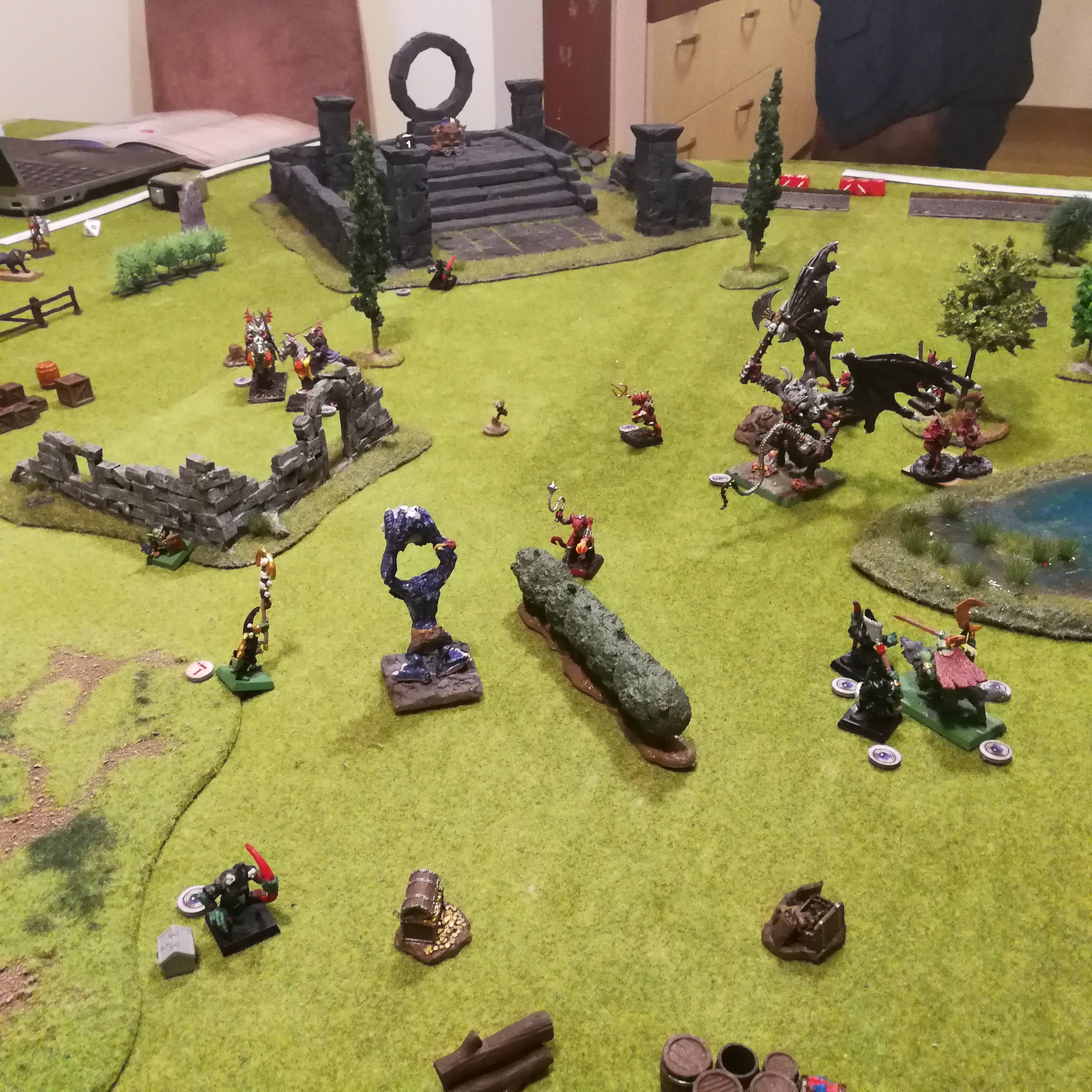 Dieses Szenario liegt den von mir gespielten Goblins mehr, da es eine Armee ist die MMN bewegt werden muss damit sie ihre Vorteile ausnutzen kann. Heads-on habe ich, da sind sich ich und mein Gegner recht einig, keine Chance mit meinen Goblins gegen Dämonen, was einige Szenarios zu Auto-Wins für die Abyssals macht. Vielleicht ändert sich da was durch die neuen Einheiten und Regeln die jetzt kommen, mit denen ich allerdings nicht ganz glücklich bin. (ein Fluggerät in einem Skirmish? Wirklich? Ein Mörser in einem Skirmish? Standard Goblin Krieger die einen stärkeren Rüstungsdurchschlag haben als Standard Menschenkrieger bzw. soviel Rüstungsdurchschlag haben wie ein Standard Oger? Wirklich?)
