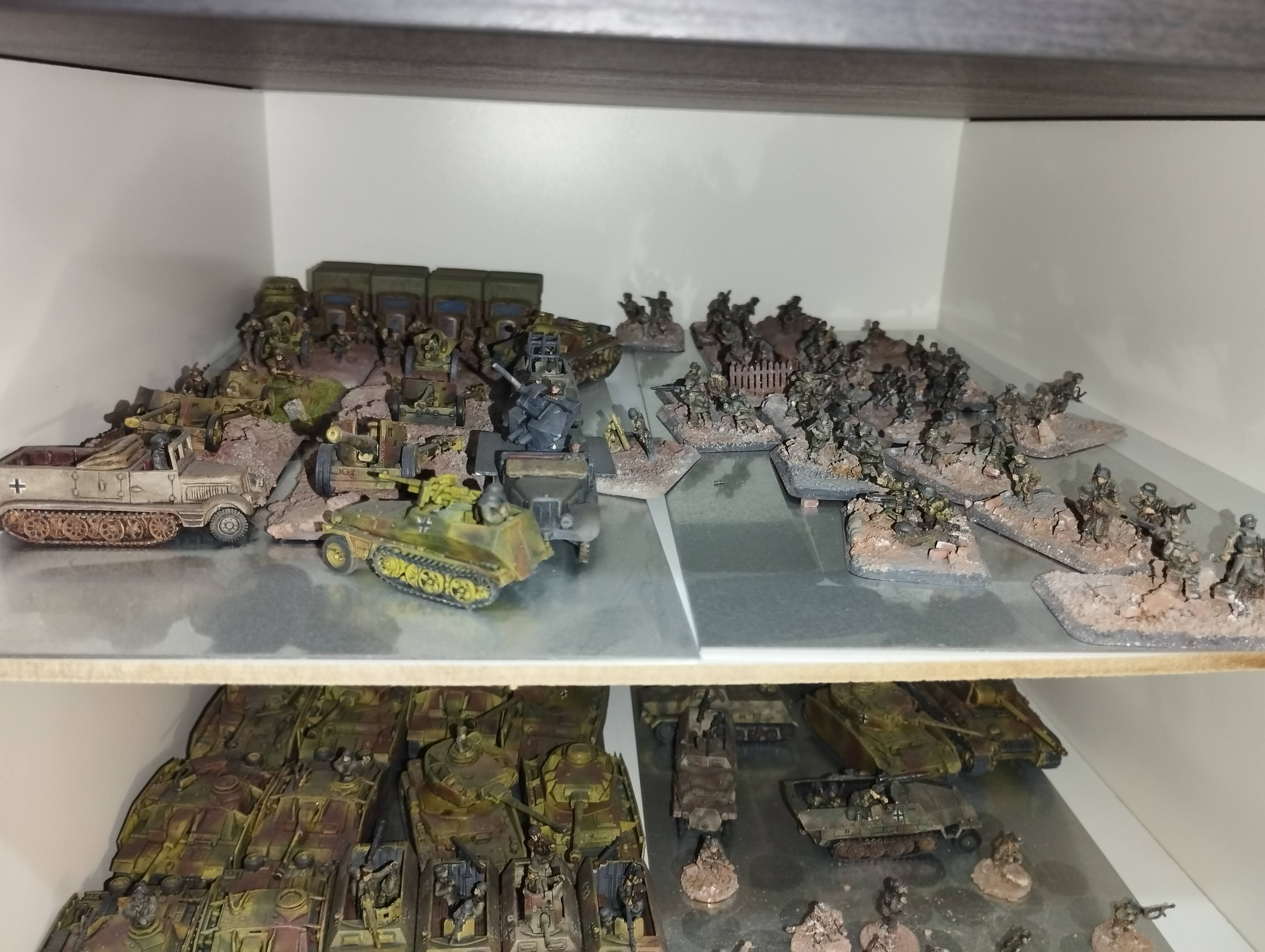 Dann überlege ich was ich spiele in 2 Wochen und habe angefangen die ganzen "Reste" an altem FoW Zeugs auf einem Platz zu sammeln...Reste ist allerdings eher relativ, das reicht für etliche Armeen in BG.