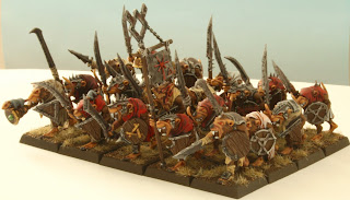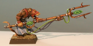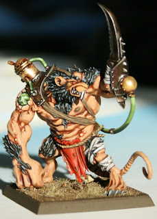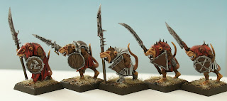 Mir taugen diese Skaven einfach gut. Deshalb hab mich aufgerafft endlich welche zu bemalen. Also die Blut-Box gekauft und los. Fünf von unzähligen sind fertig. Sind die ersten Testmodelle. Bin mit den Farben und deren Kombination zufrieden. Die nächsten sind bereits in Arbeit.