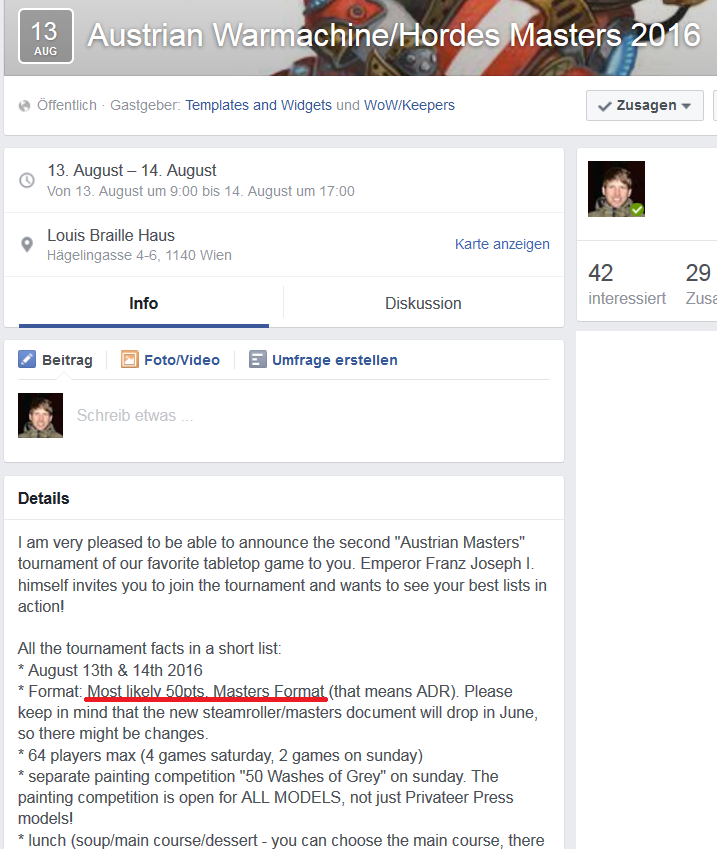 Ich freue mich sehr euch für 2016 die zweiten österreichischen Meisterschaften unseres Lieblings-Tabletops vorankündigen zu dürfen. Der Kaiser lädt erneut zum Turnier und will eure besten Listen in Aktion sehen!