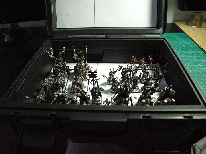 ACHTUNG! Das Spiel ist nicht vollständig! Die Blood Angels fehlen. Die Tyraniden sind großteils noch vorhanden (auch der Symbiarch), ein paar der Symbionten fehlen aber auch. Das Spielfeld, die Anleitung und das Zubehör sind vollständig.
