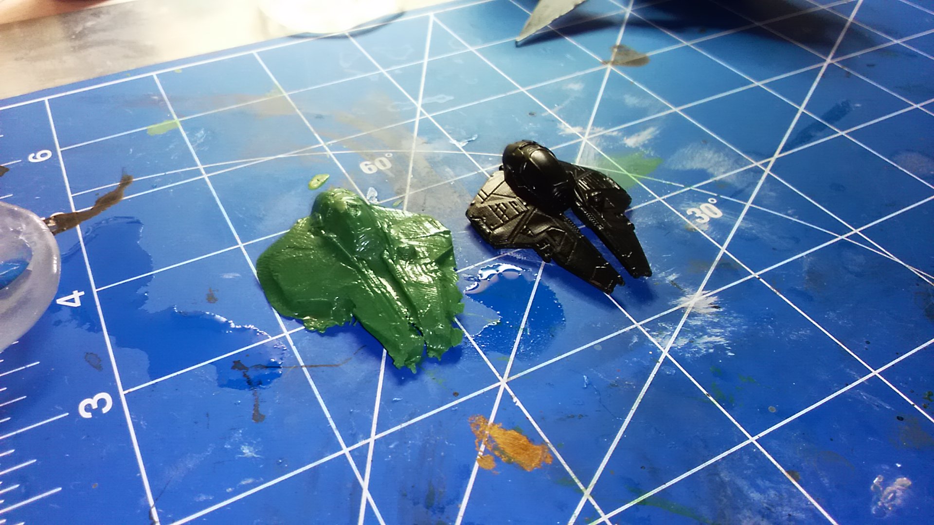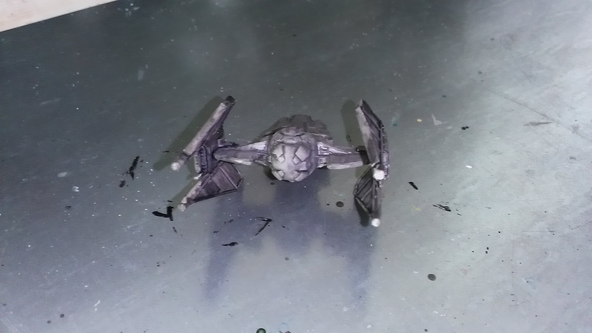 Der Versuch eines ersten Ugly Fighters, gebaut aus einem Micromachines Tie Fighter und einigen Bitz sowie Plastikkarton.