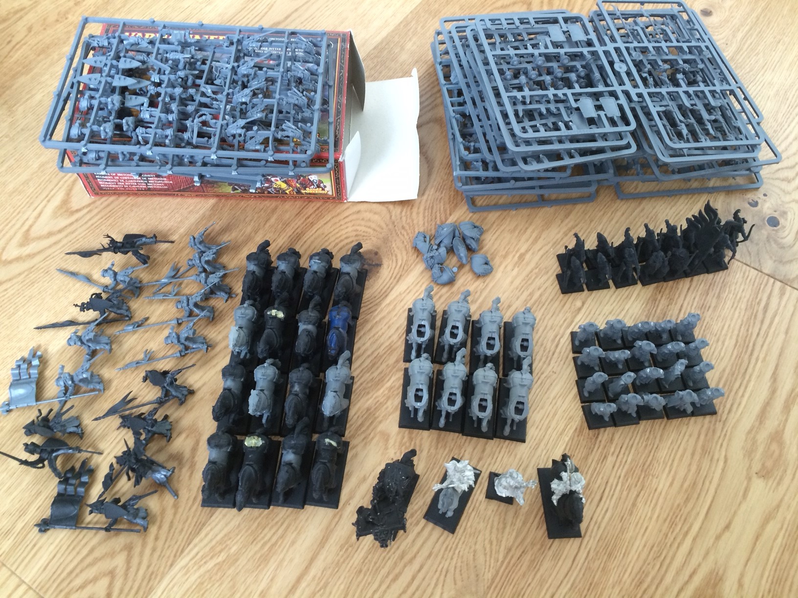 Wie der Titel sagt, möchte ich gerne einige Bretonen verkaufen. Ich würde die Armee vorerst gerne als Gesamt-Paket verkaufen, sollte sich jedoch niemand finden, so wird ein Einzelkauf an einem späteren Zeitpunkt auch möglich sein (die VB Einzelpreise kommen dann noch dazu). Alle Figuren sind unbemalt (manche wurden grundiert) und ungebaut, gebaut oder teilgebaut.