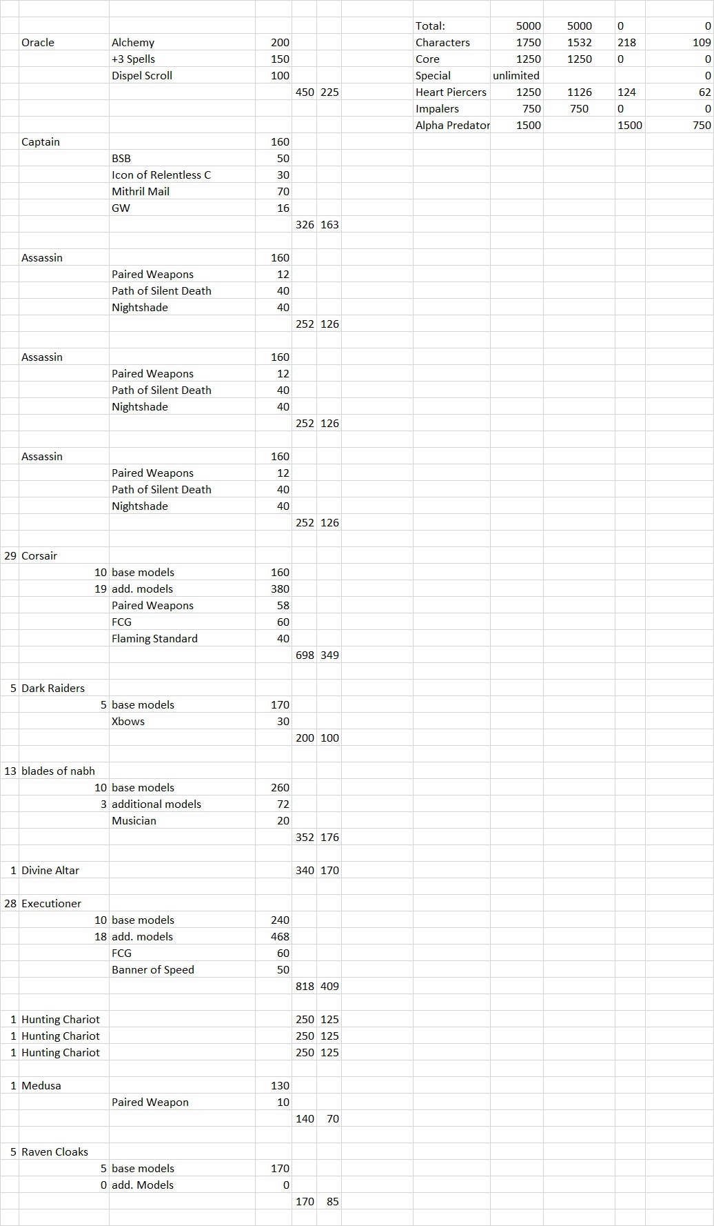 auch sehe ich es ein, dass es den non-profit Regelfuzzies ein Anliegen ist 4500pkte zu spielen (zumindest wird es empfohlen) in dem Sinne bitte ich euch, mal über alles was man kannte mal wieder hinwegzusehen....und alte Lieben zu begraben....
