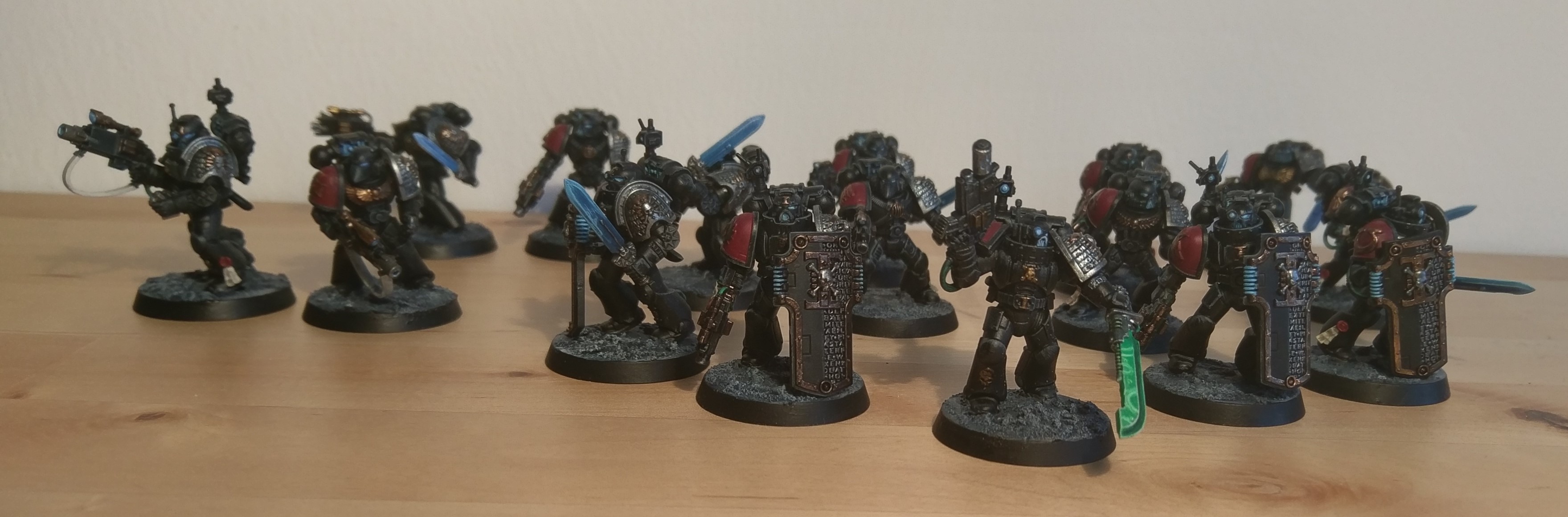 Z.B. die neuen Infanterieregeln: wie sich das in der Praxis spielt, wird sich erst zeigen, aber ich sehe gute Chancen, meine fußläufige Imperiale Armee wieder auszupacken, weil die im neuen System (schwere Waffen sind auch nach Bewegung nützlich UND können auf etwas anderes schießen als der Rest einer Einheit) tatsächlich mehr können als hinten stehen und schießen. Wird auf jeden Fall einen Versuch wert sein. Meine Skitarii werden wohl weniger davon profitieren, aber vielleicht finden sich da auch neue Möglichkeiten für mich. Schwierig ist natürlich jetzt die Planung neuer Projekte, aber im Moment arbeite ich an einer kleinen Abordnung der Deathwatch; die sind, als Verstärkung meiner anderen Armeen, sicher auch im neuen System lustig. Im Anhang ein paar der Modelle - ich freu mich schon sehr auf den Einsatz!