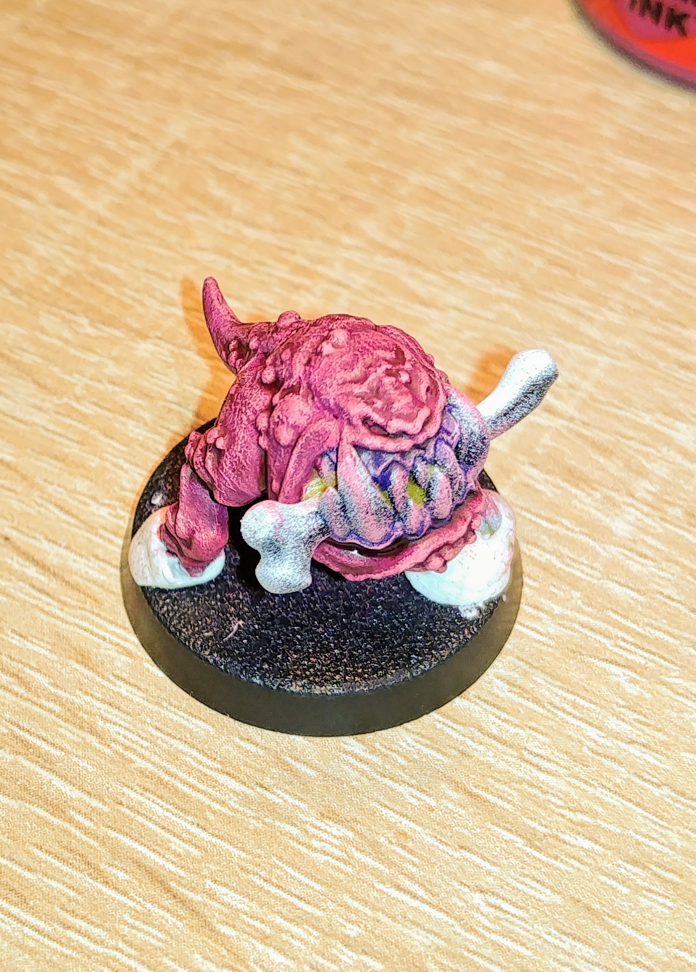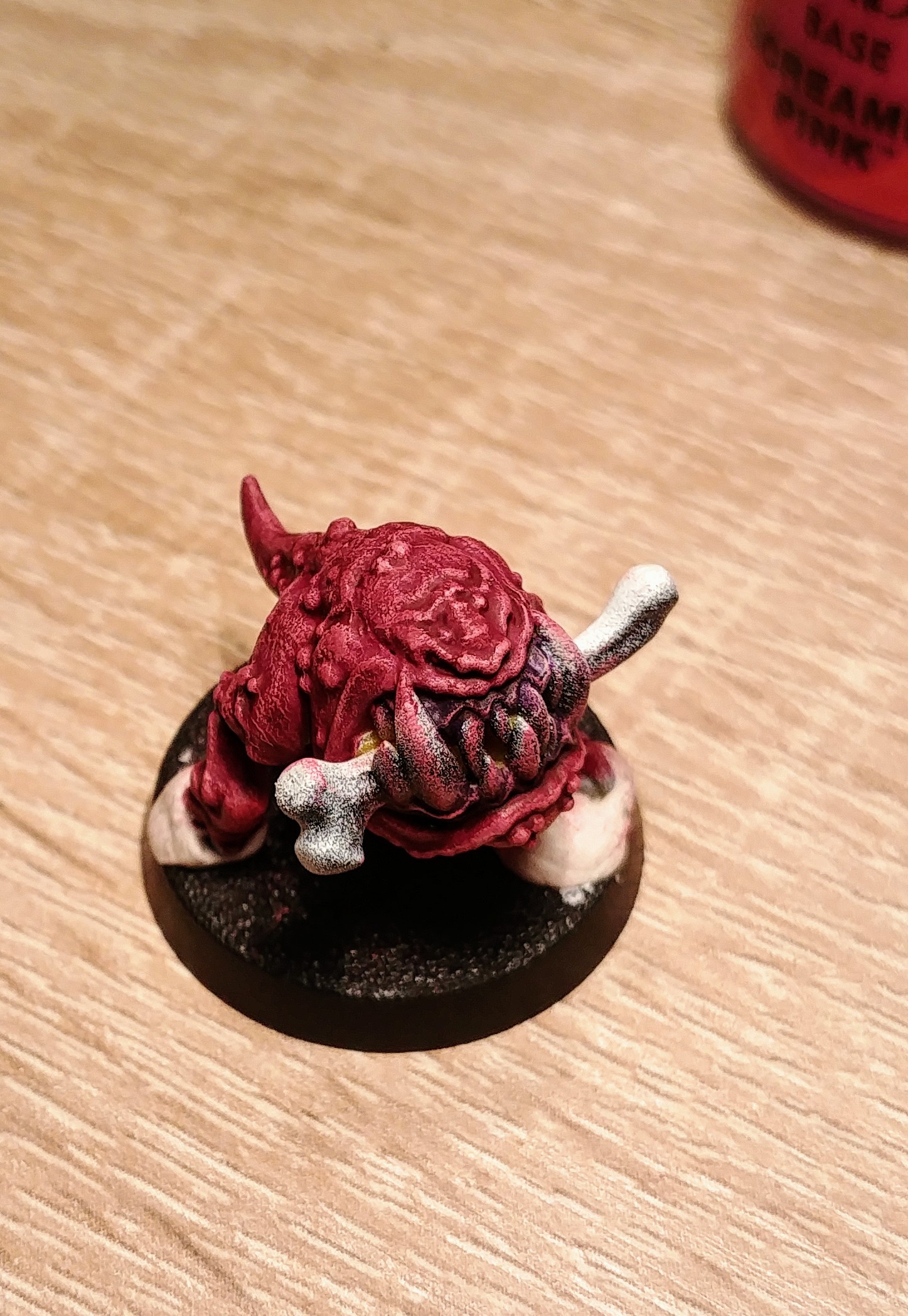 Doppelpost, aber hier noch der Nachtrag zu gestern und eigentlich auch Beitrag für heut, ich war einfach mit dem Endergebnis beim pinken Squig gestern Nacht nicht zufrieden, also heute Morgen noch weiß drüber und Farbtests für Mono-Wash Haut gemacht^^