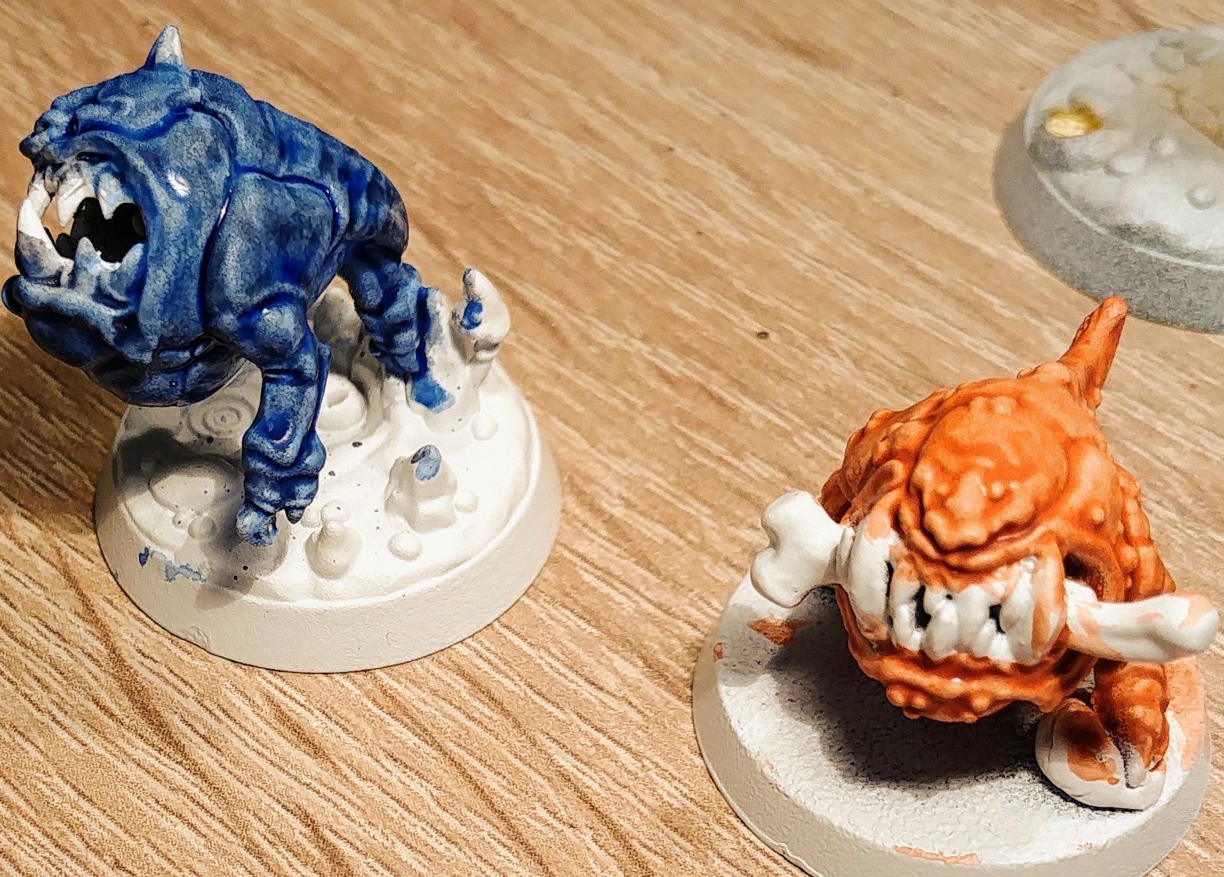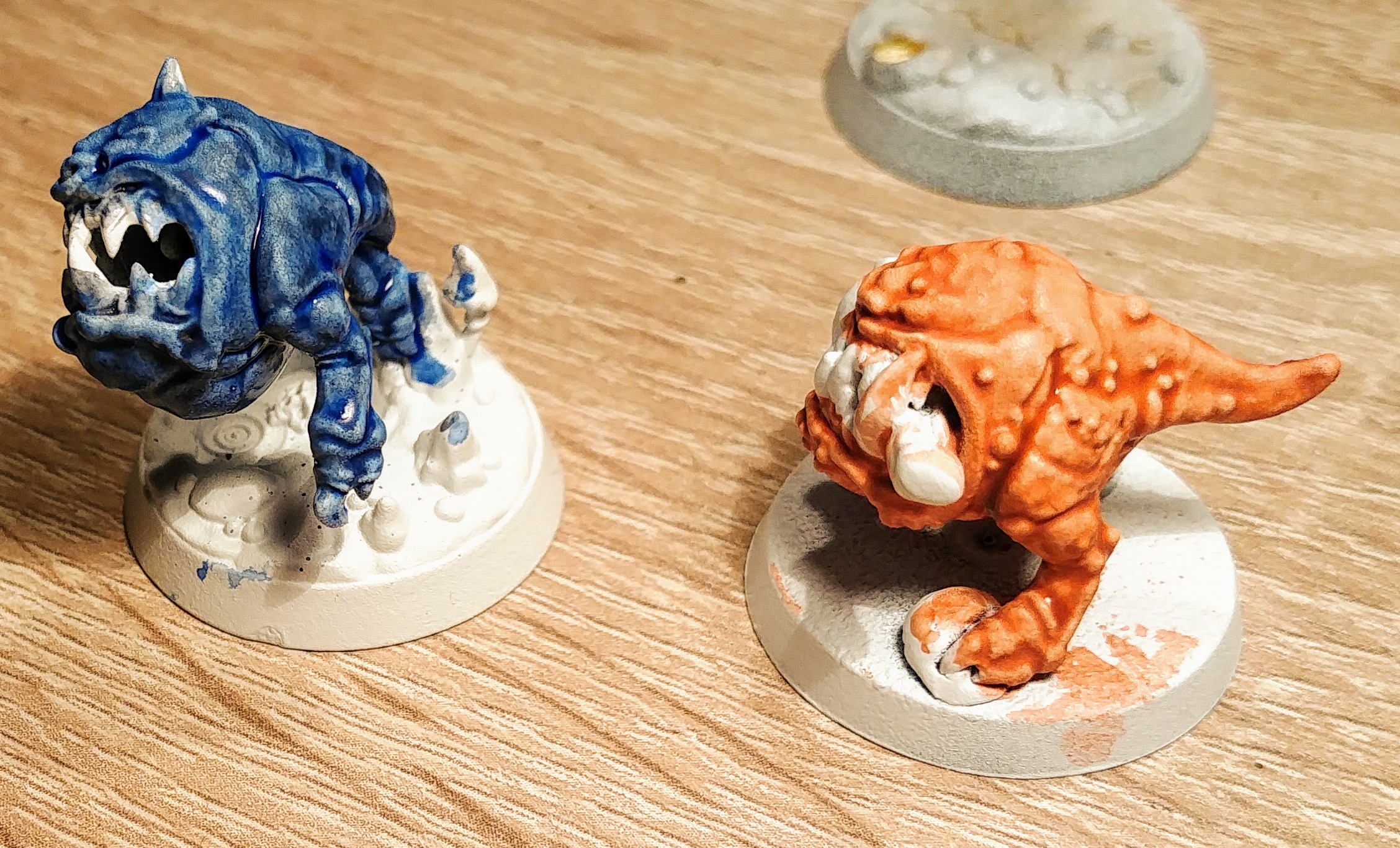 @Blue_Scribe denkst du ihr werdet ToS mal im Laden zum probieren haben? Wie findest du die Gibbering Horde? Das wären die einzigen die für mich in Frage kommen - > Farbiger Grundierungsspray, mit ner 2. Farbe paar Akzente, Quick Shade, trocken bürsten, Mattlack fertig *gg*