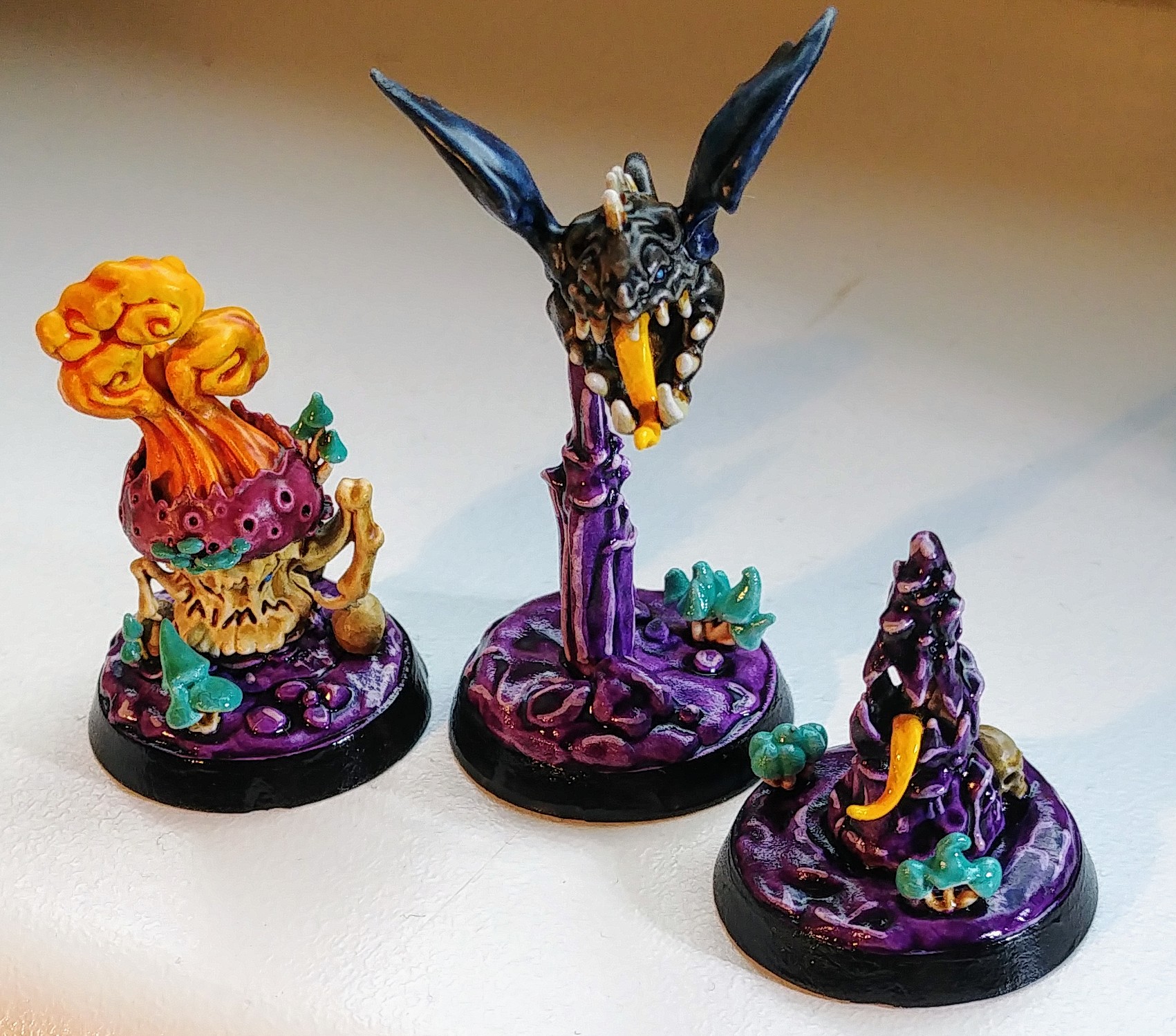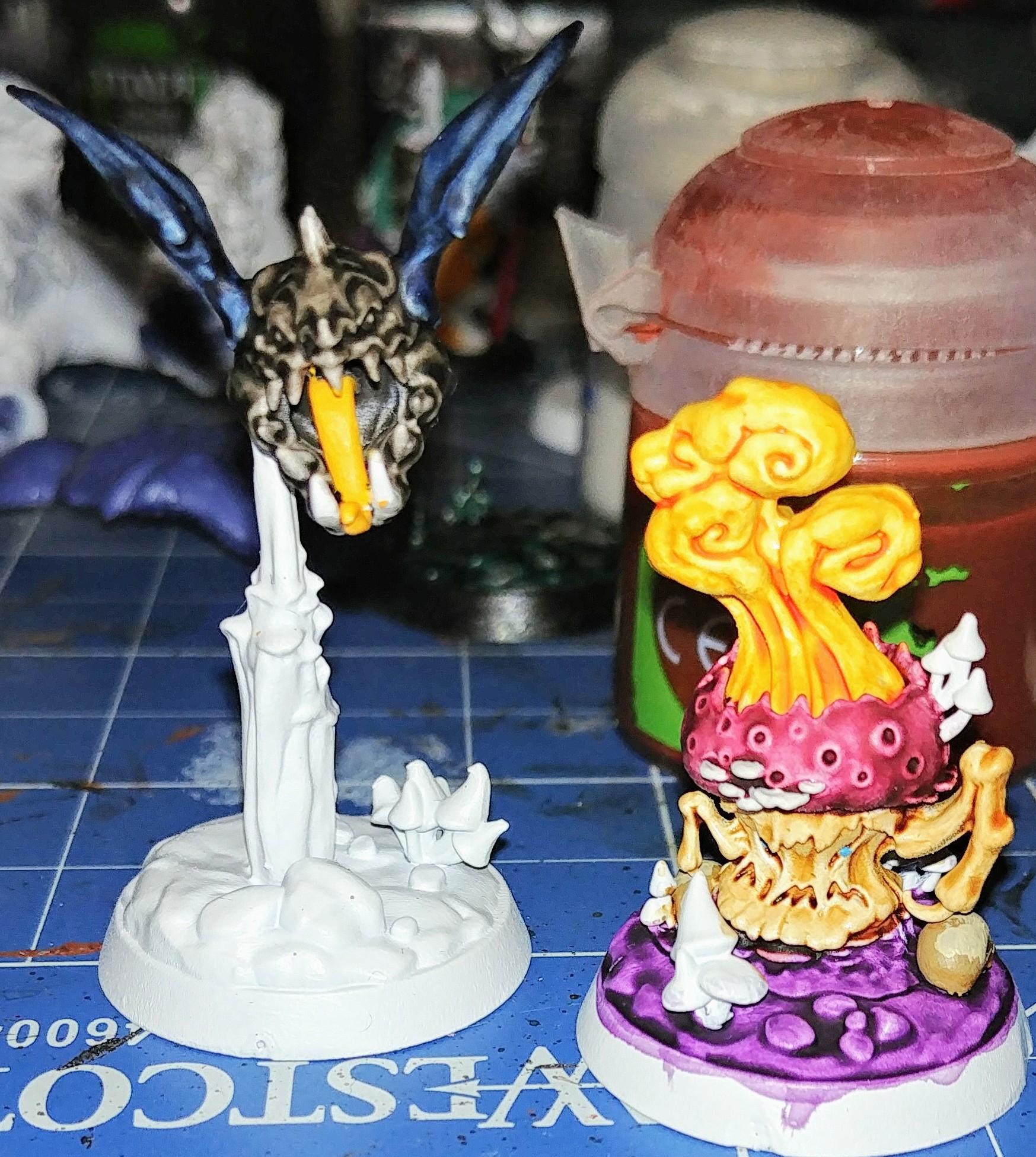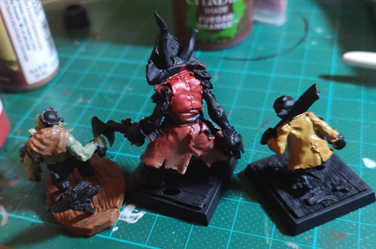 abyssals und northern alliance zu großen teilen grundiert. bei den abyssals gabs ne sauerei weil das army painter spray irgendwie undicht wurde, ich dann alles versprühen musste bevor das ganze gas draußen war... und teilweise hatte ich dabei dann unschön dicke farbschichten im stress... und eines dann noch auf meinem charakter-succubus modell