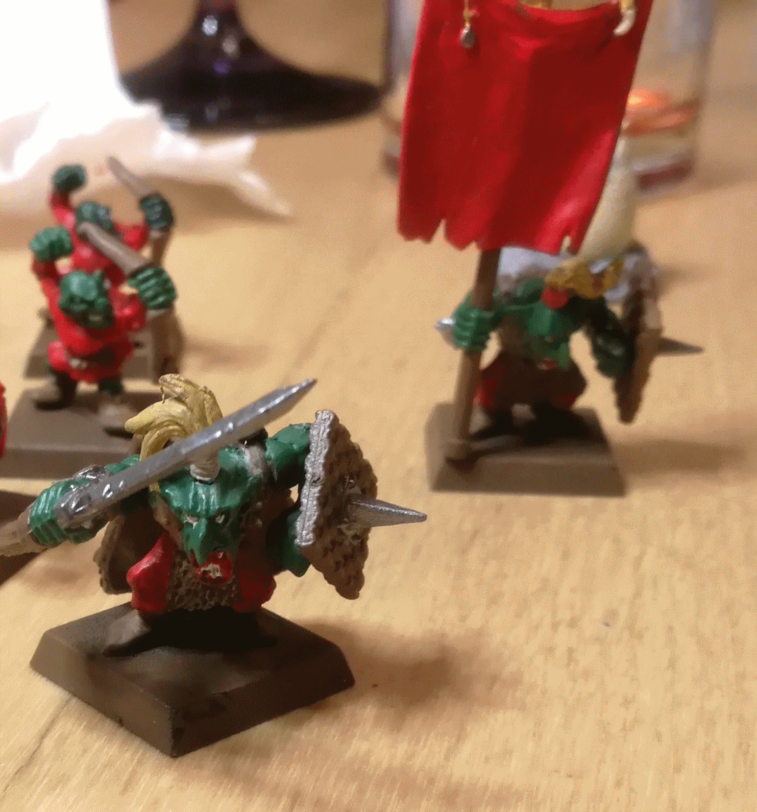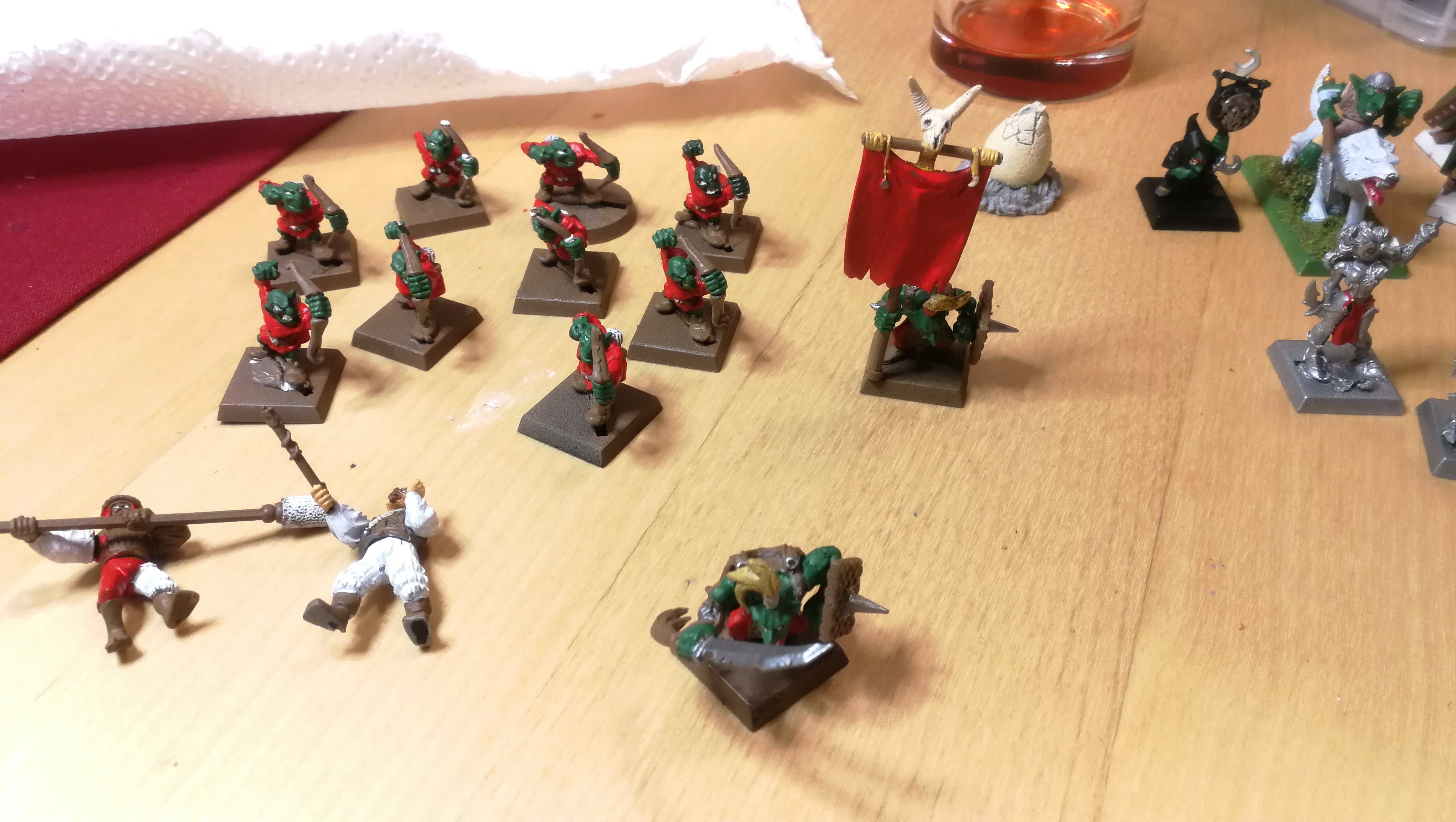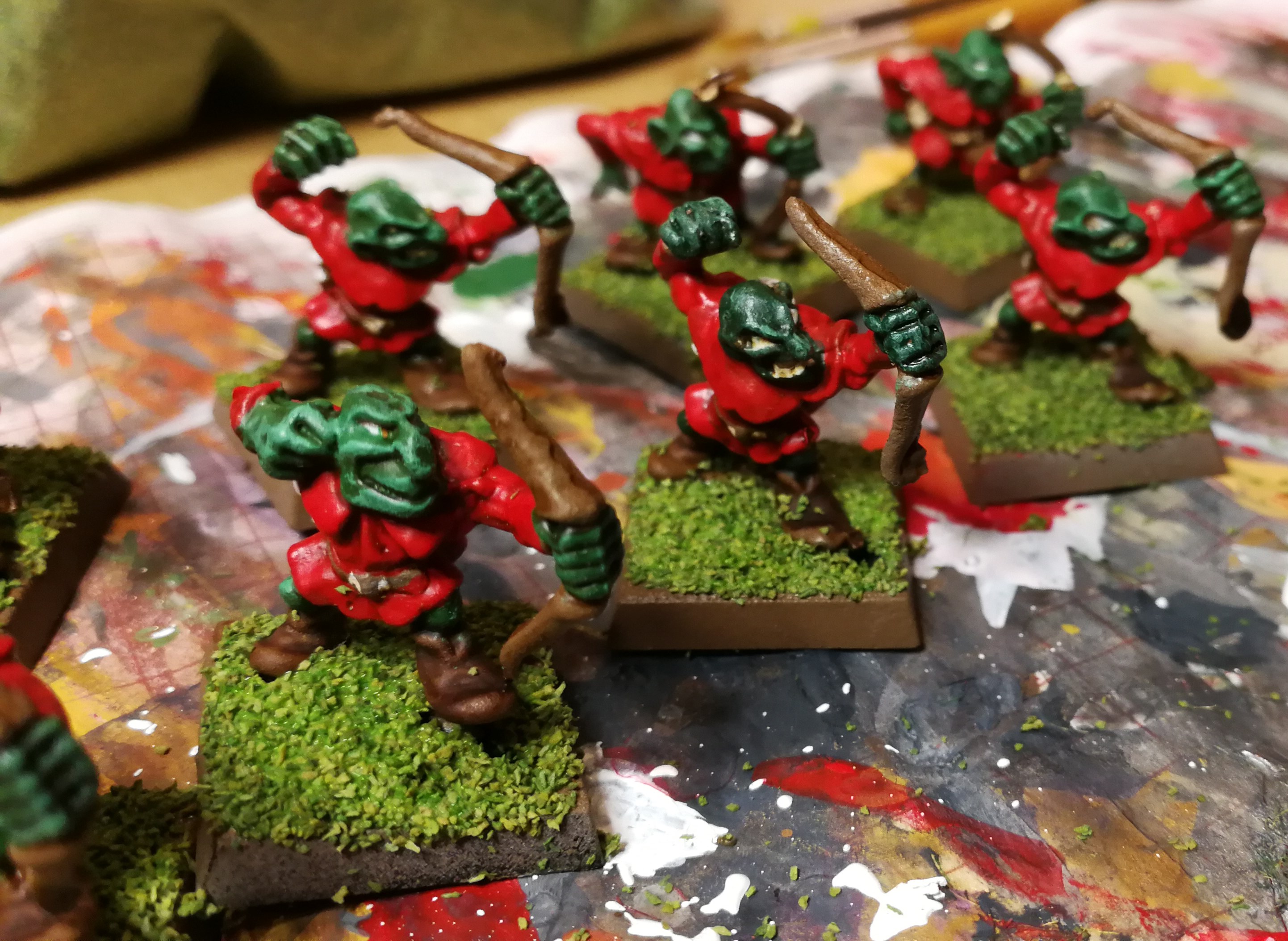 Hab das was ich für Herr der Ringe habe bepinselt. Wargreiter, paar Moriaorks und einen passenden Steinriesen.