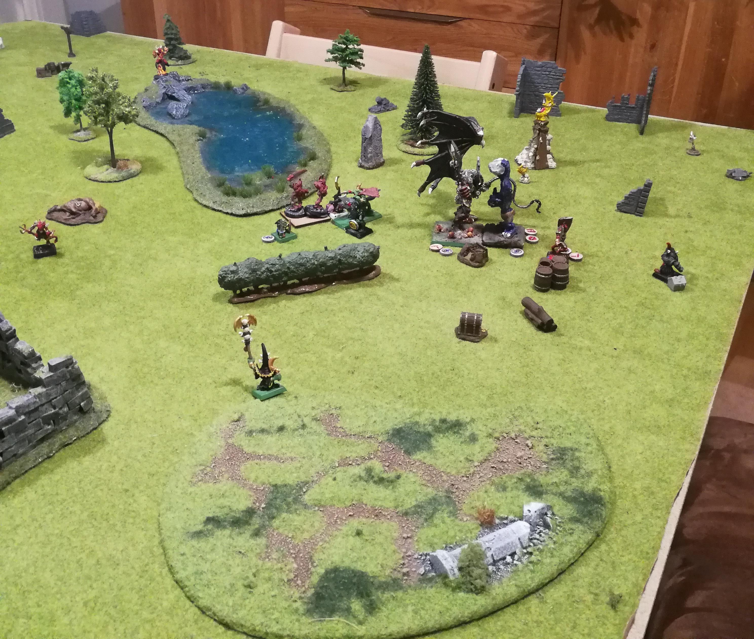 Dieses Szenario liegt den von mir gespielten Goblins mehr, da es eine Armee ist die MMN bewegt werden muss damit sie ihre Vorteile ausnutzen kann. Heads-on habe ich, da sind sich ich und mein Gegner recht einig, keine Chance mit meinen Goblins gegen Dämonen, was einige Szenarios zu Auto-Wins für die Abyssals macht. Vielleicht ändert sich da was durch die neuen Einheiten und Regeln die jetzt kommen, mit denen ich allerdings nicht ganz glücklich bin. (ein Fluggerät in einem Skirmish? Wirklich? Ein Mörser in einem Skirmish? Standard Goblin Krieger die einen stärkeren Rüstungsdurchschlag haben als Standard Menschenkrieger bzw. soviel Rüstungsdurchschlag haben wie ein Standard Oger? Wirklich?)