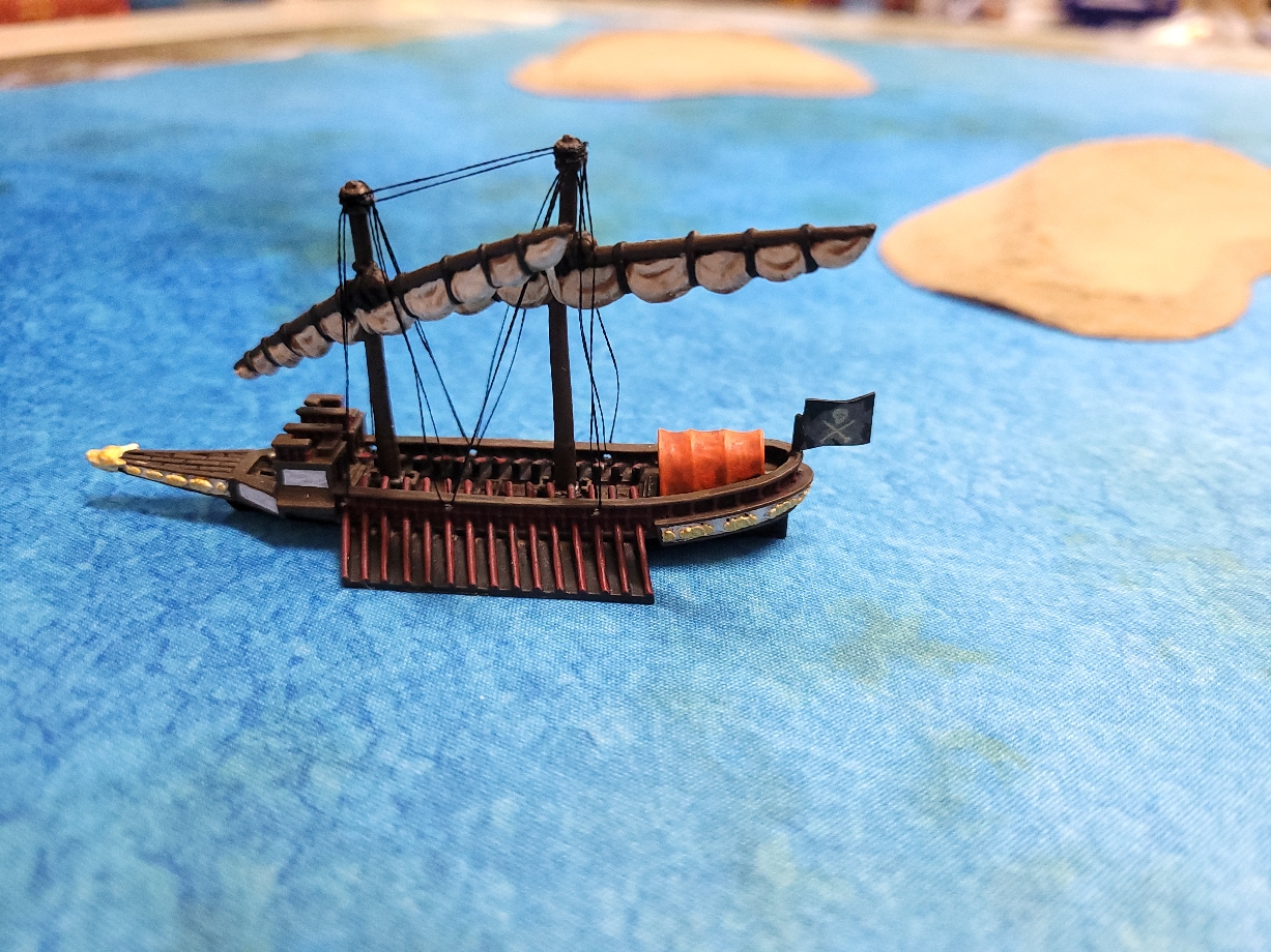 Dabei hat mich die verstärkte Beplankung meiner Brigg im Spiel gehalten. Dann konnte ich seine Brigg in Brand schießen, was ihn zusätzlich zum normalen Schaden der Kanonen so viele Strukturpunkte gekostet hat, dass er im Endeffekt die Flagge streichen musste. Obwohl die Russen sich erst ergeben haben als ihnen Ihr Schiff fast unter den Füßen auseinandergefallen ist (2 geschaffte Skilltestes fürs Flaggestreichen).