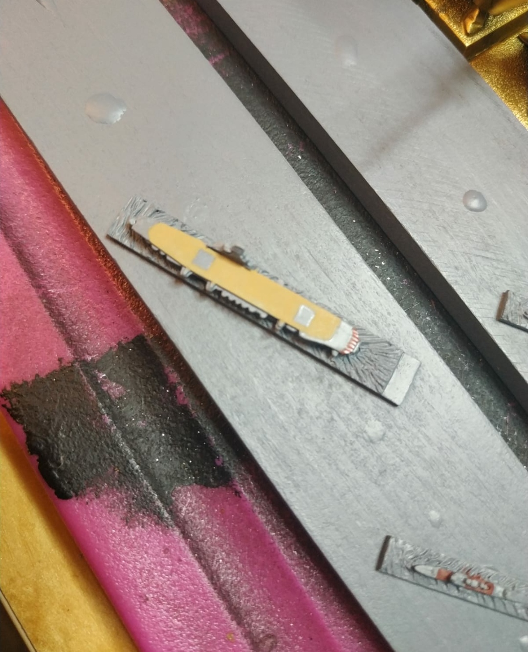 Die Modelle sind von Figurehead im zarten Maßstab von 1/6000 damit die Gefechtsdistanzen halbwegs einen realistischen Maßstab bekommen, außerdem sind die Miniaturen günstig.