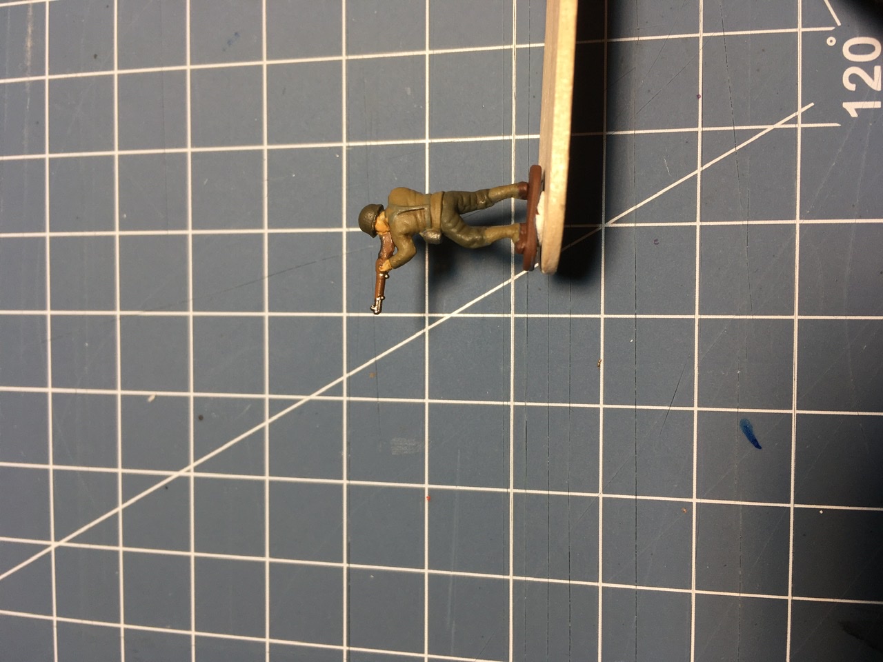 Bei diesen Maßstab werde ich mir nicht viel antun, daher gehe ich davon aus das 3-4 Grundfarben (Uniform, Schuhe, Waffe, Gesicht) und ein brauner Wash ausreichend sind.