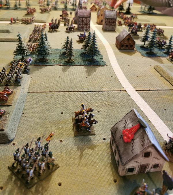Am Samstag den 22.01.22 haben wir wieder in meinem Spielkeller in Vöslau ein Spiel nach den "Wiener Napoleonregeeln" mit 15mm Figuren duchgeführt. Wir spielten in Anlehnung an das Gefecht 1805 bei Haslach. Wir spielten in 3 Gefechtsstreifen West, Mitte, Ost jeder mit etwa einer Division/Spieler. Beiderseitige Siegesbedingung war es, mehr Siegespunkte aus der Feind zu gewinnen. Am Spielende gewannen schließlich die Franzosen mit einem Siegespunkt mehr und sie haben die Österreicher zum Rückzug nach Ulm gezwungen.