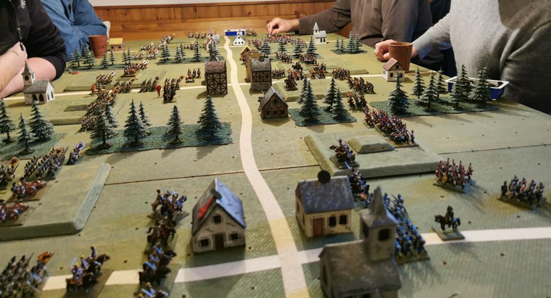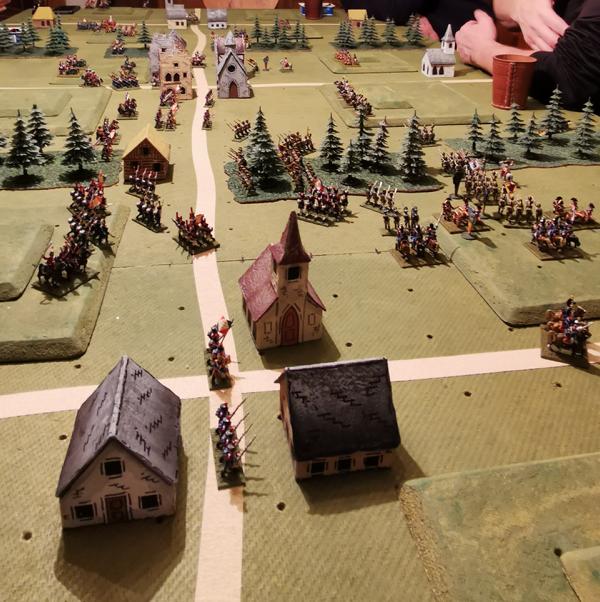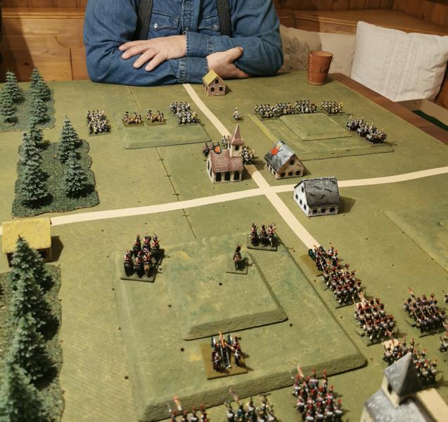 Am Samstag den 22.01.22 haben wir wieder in meinem Spielkeller in Vöslau ein Spiel nach den "Wiener Napoleonregeeln" mit 15mm Figuren duchgeführt. Wir spielten in Anlehnung an das Gefecht 1805 bei Haslach. Wir spielten in 3 Gefechtsstreifen West, Mitte, Ost jeder mit etwa einer Division/Spieler. Beiderseitige Siegesbedingung war es, mehr Siegespunkte aus der Feind zu gewinnen. Am Spielende gewannen schließlich die Franzosen mit einem Siegespunkt mehr und sie haben die Österreicher zum Rückzug nach Ulm gezwungen.