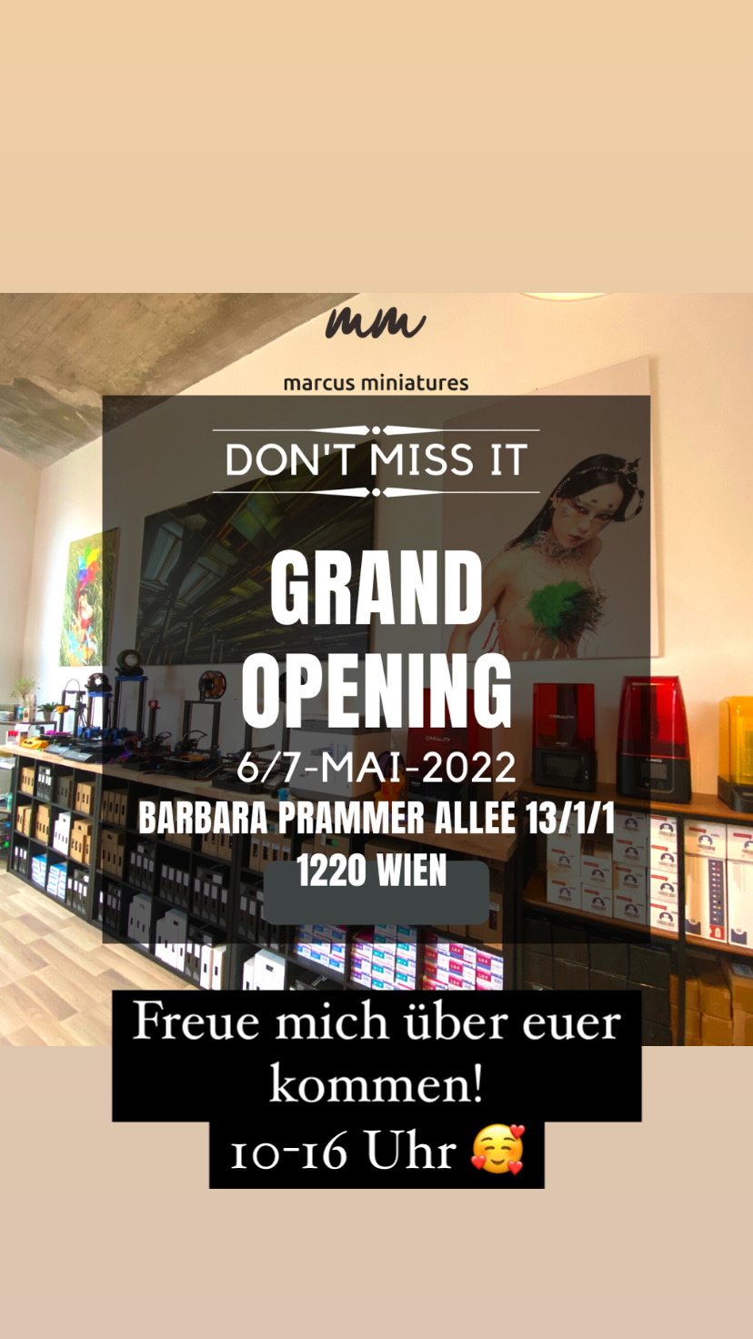Seit Jänner arbeite ich hart an meinem Traum nen eigenen 3D Druck Laden zu haben, jetzt hat das warten sein Ende und würde mich sehr freuen wenn ich den ein oder anderen bei der Eröffnung sehen würde