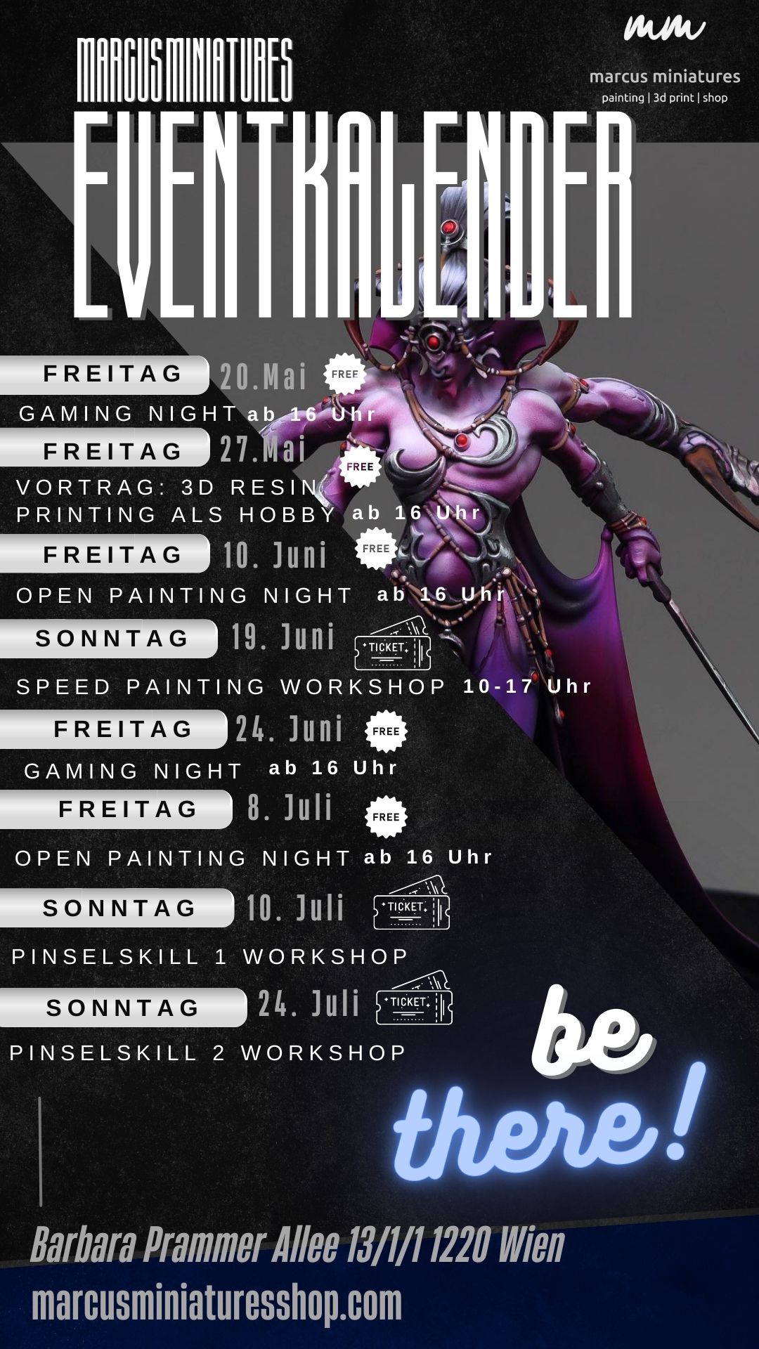 Wir haben einen ganzen Eventkalender für euch geplant, Kurse, Gratis-Seminare, Gaming und Painting Nights. Alles was das Herz begehrt.