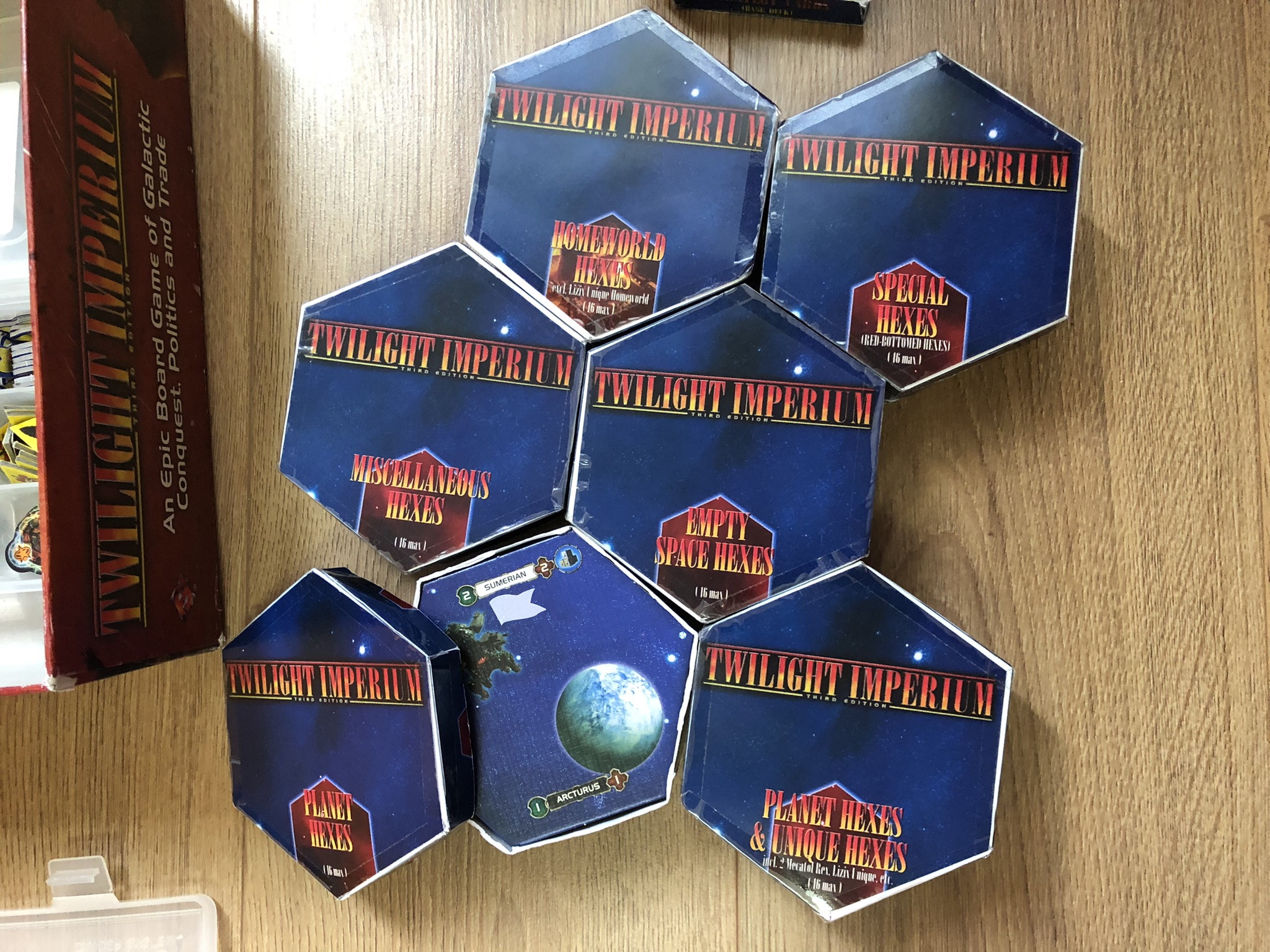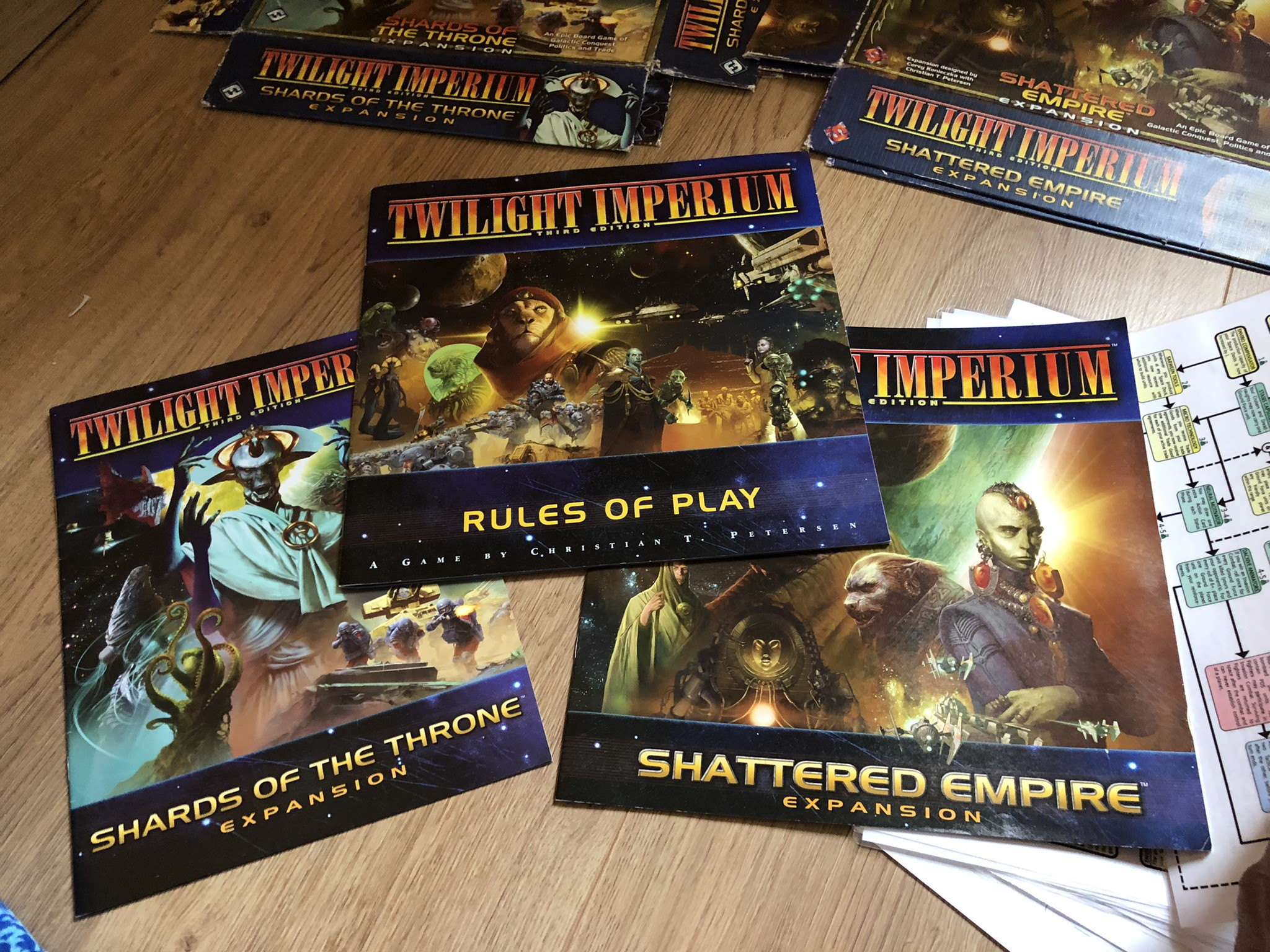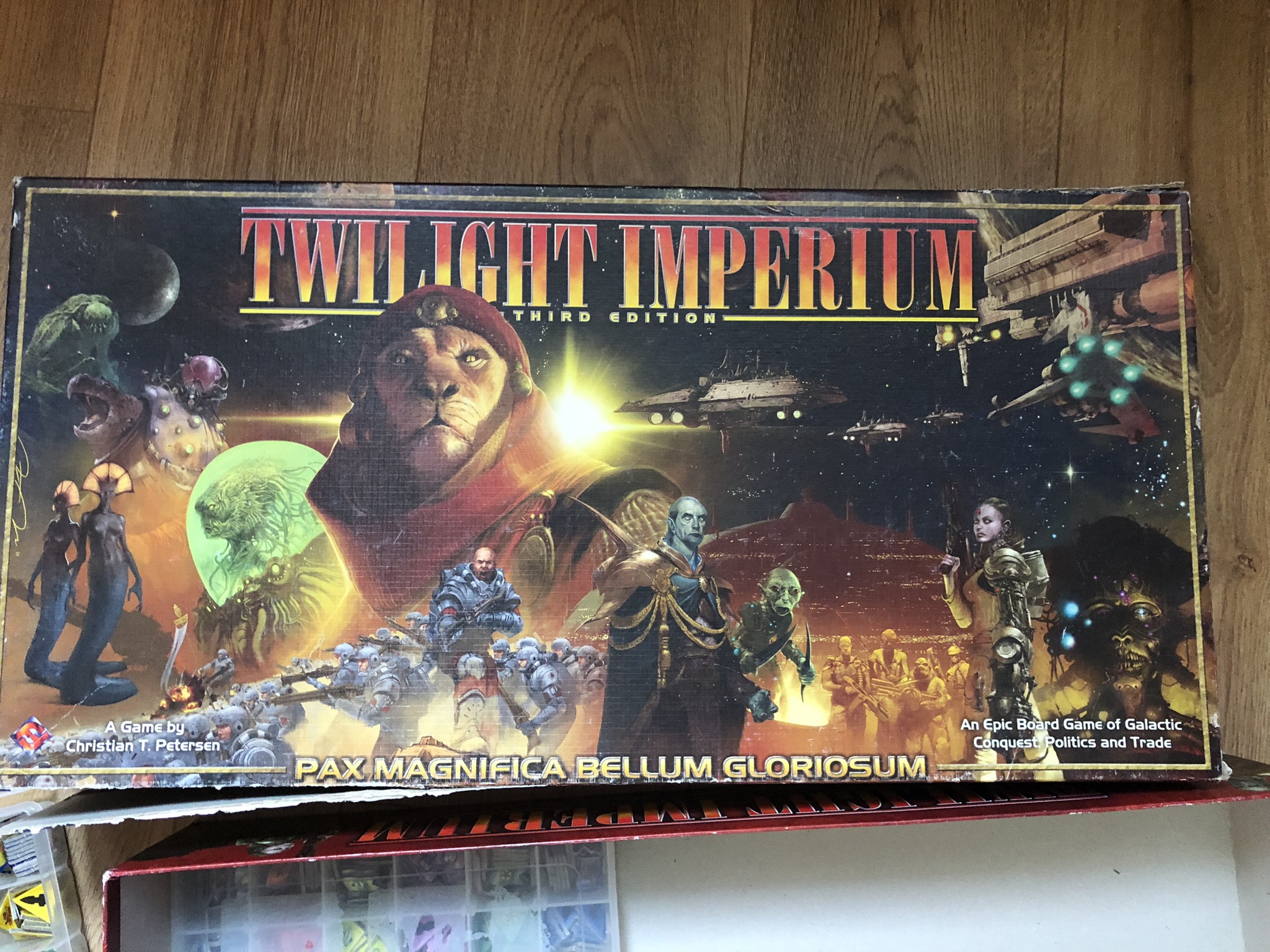 Ich verkaufe Twilight Imperium 3rd Edition auf English. Enthalten sind nicht nur die Spiele selbst, sonder viele, viele Hilfsmittel die das Spielen zu einem hochwertigen Erlebnis machen: