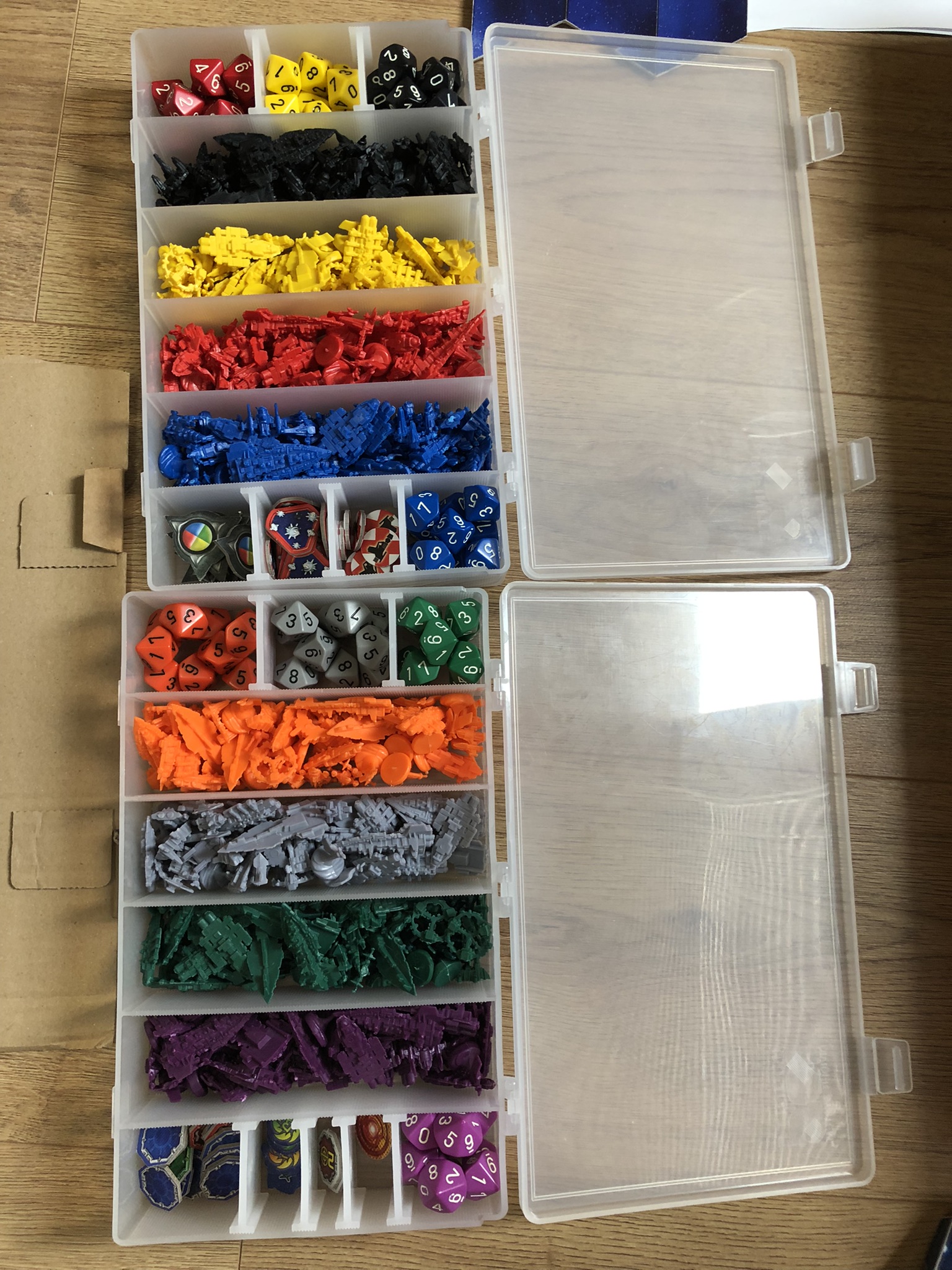 - Alle Schiffe usw sind in plastic boxen einsortiert