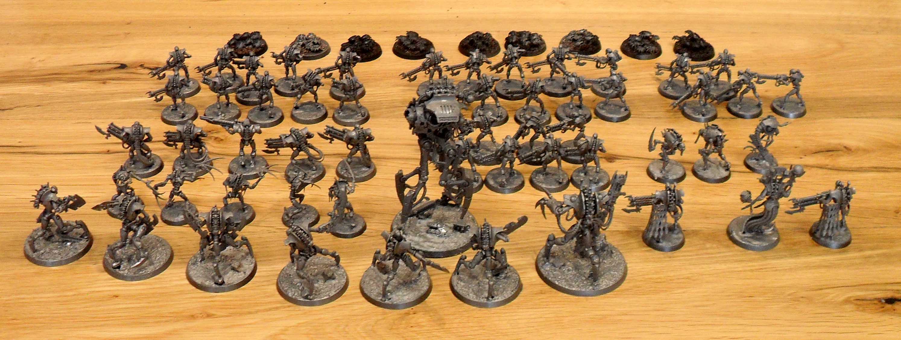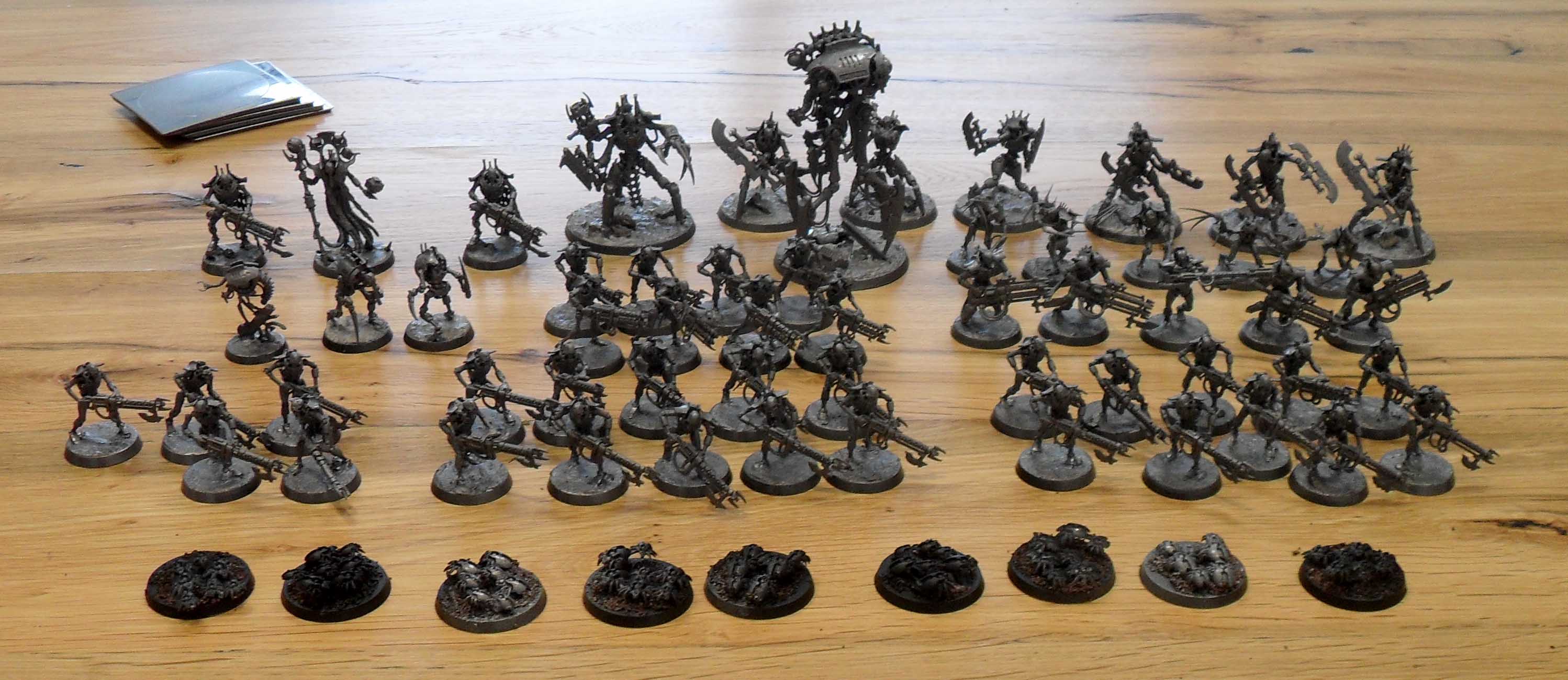 mittelgroße Necron Armee, zusammengebaut und grausilbern grundiert, Ideal als Basis für eine neue Armee, 68 Minis, 160€ (+3€ Versand für Österreicher, +10€ Versand für Deutsche)