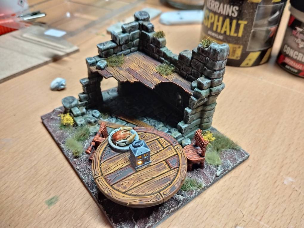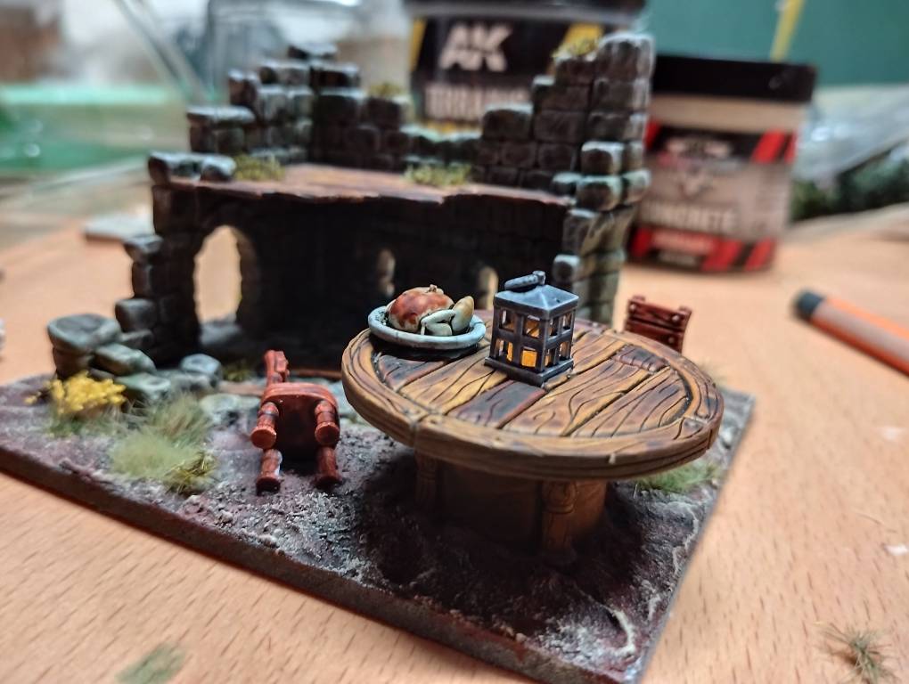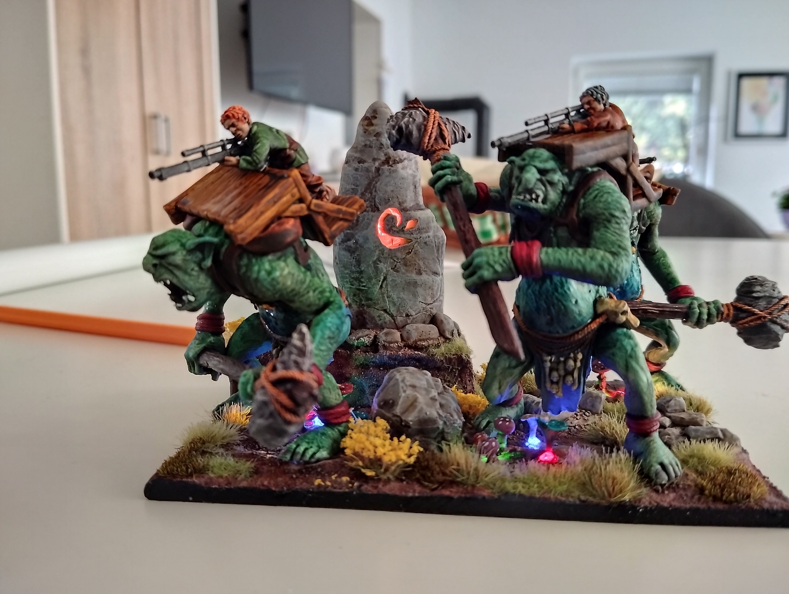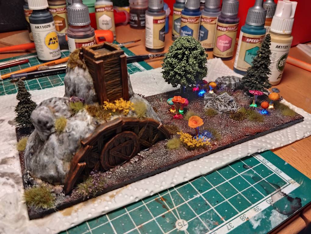 Hier noch ein paar Fotos meiner bisherigen Werke. Das Multibase bauen gefällt mir zur Zeit mehr als die Minis malen... Nach den Halblingen probiere ich mal aus, dass ich einige Dioramen baue und in Resin gieße!