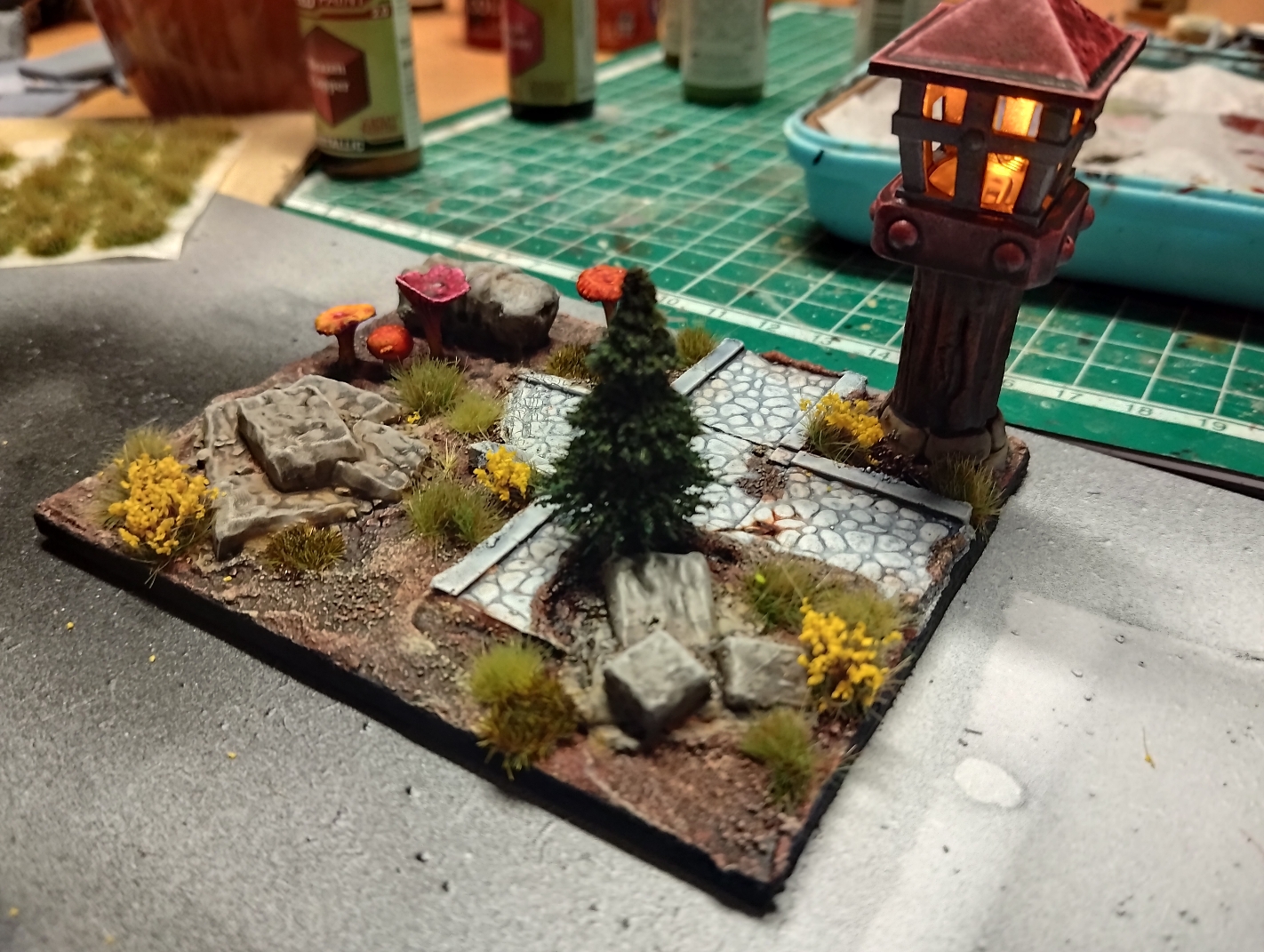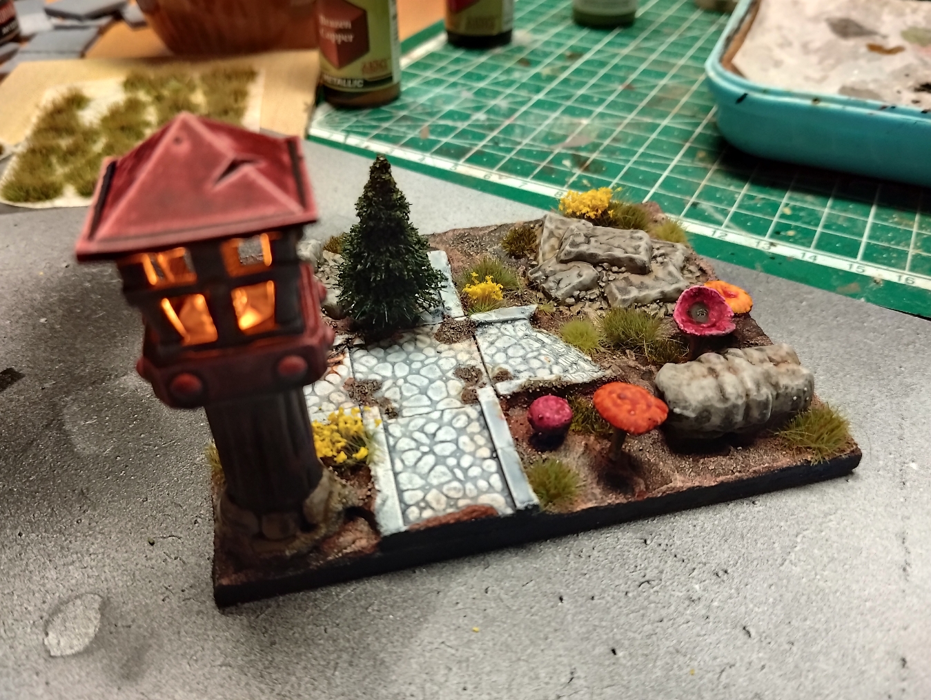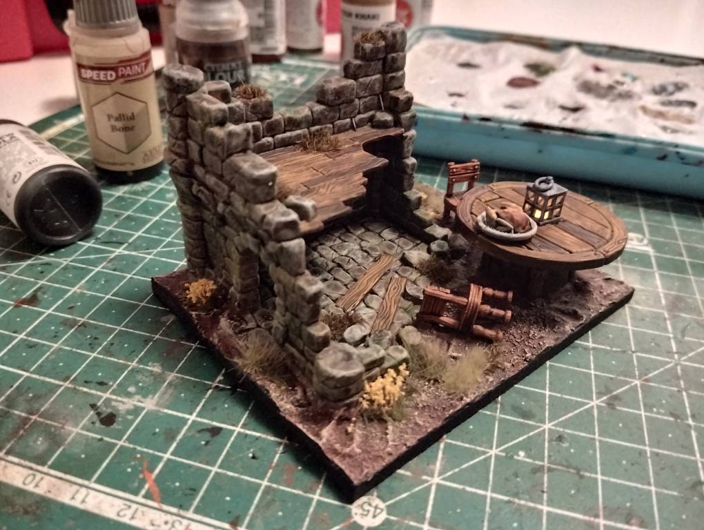 Hier noch ein paar Fotos meiner bisherigen Werke. Das Multibase bauen gefällt mir zur Zeit mehr als die Minis malen... Nach den Halblingen probiere ich mal aus, dass ich einige Dioramen baue und in Resin gieße!