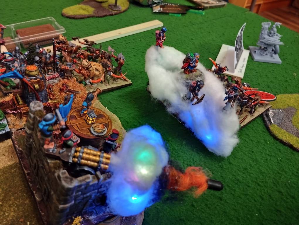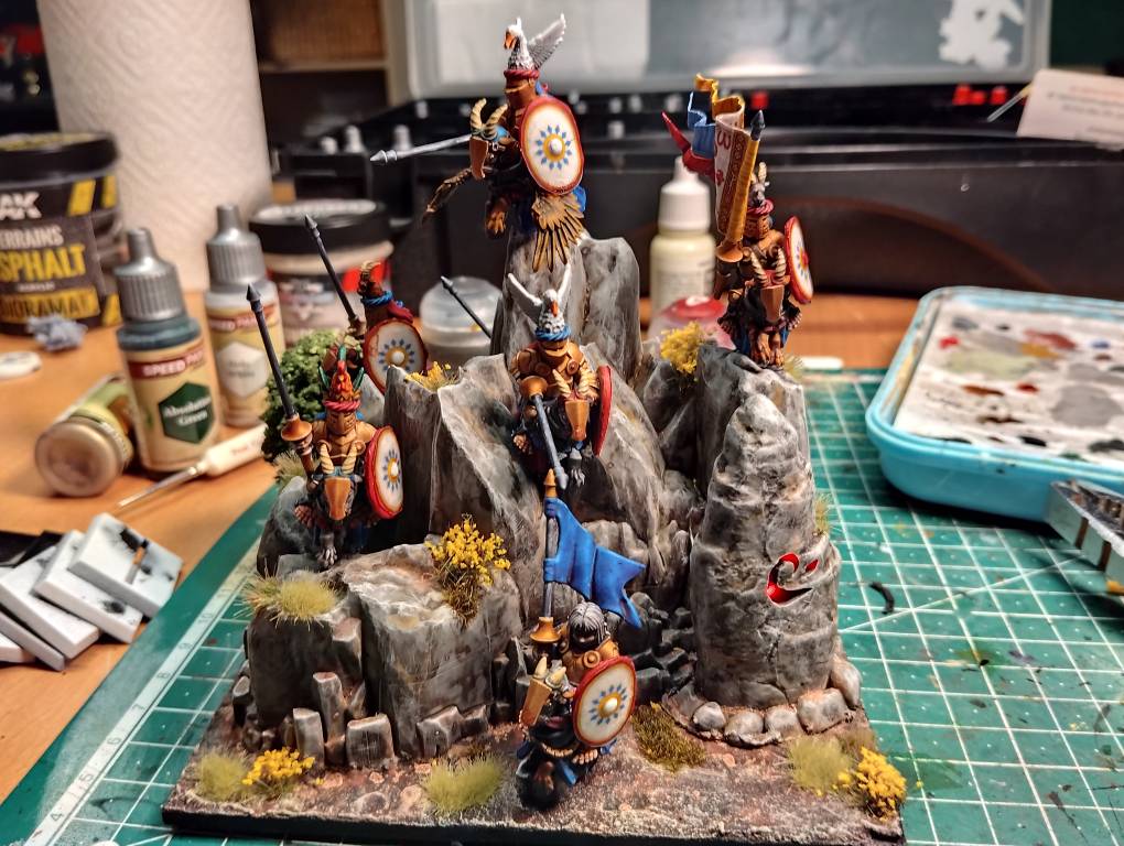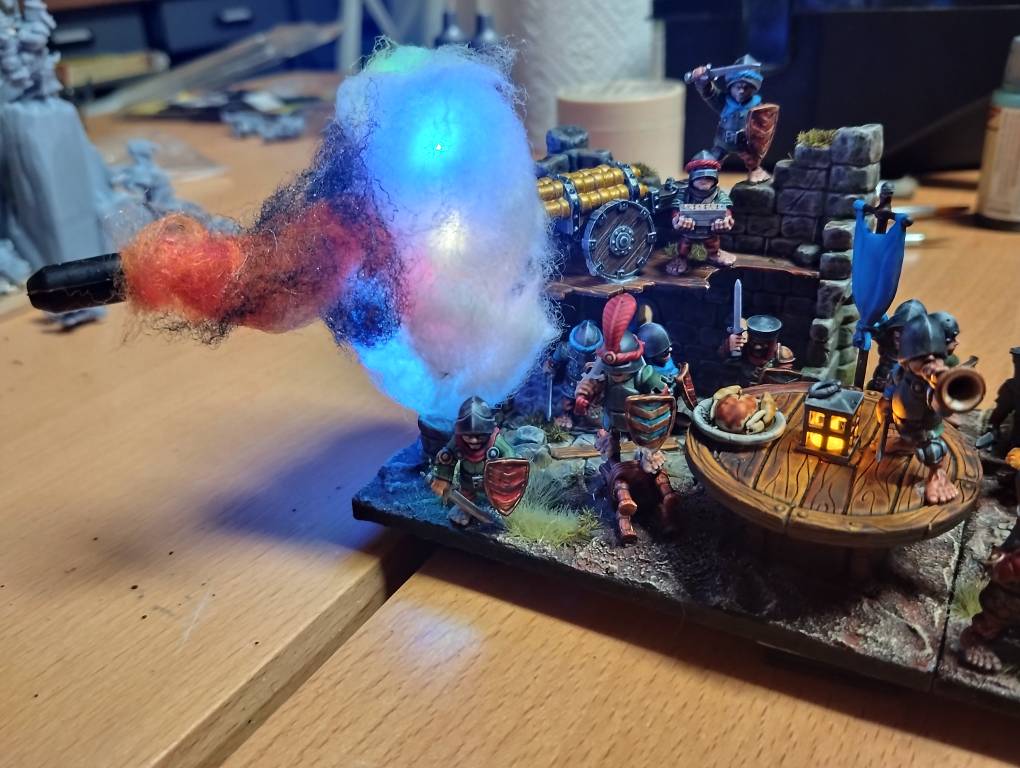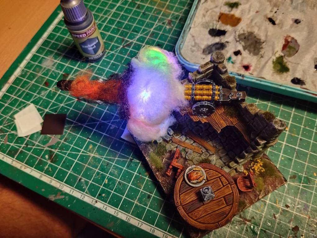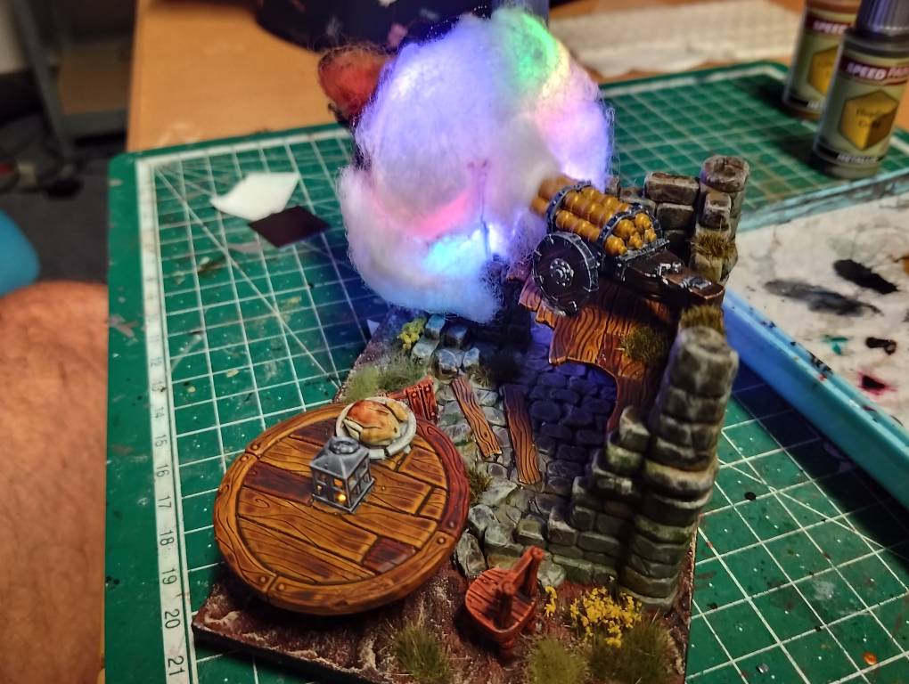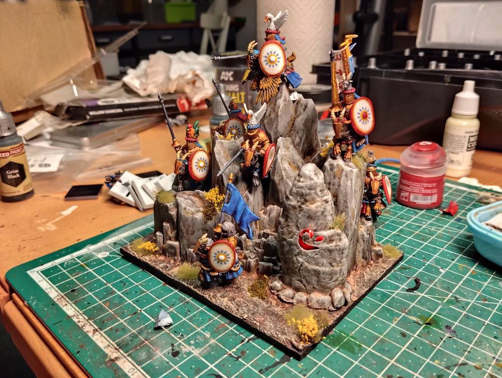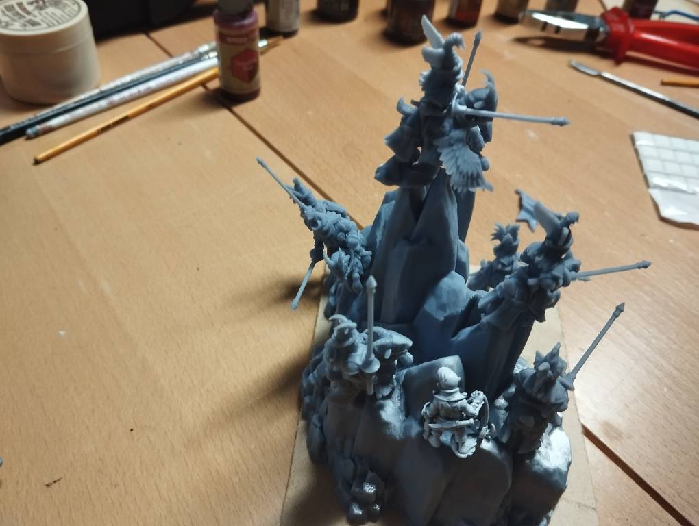Begonnen habe ich dann auch gleich mit einem Regiment Ej Grenadiers und mir haben die Wolkenbases im Internet nicht gefallen. Ich hatte dann die Idee, dass ich unten 5 bis 6mm Gelände hingebe und die fliegenden Einheiten, dann über Wolken platziere. Dann habe ich noch DioramenYouTubes gesehen, wo LED Lichter eingebaut wurden. Diese habe ich dann noch hinzugefügt!