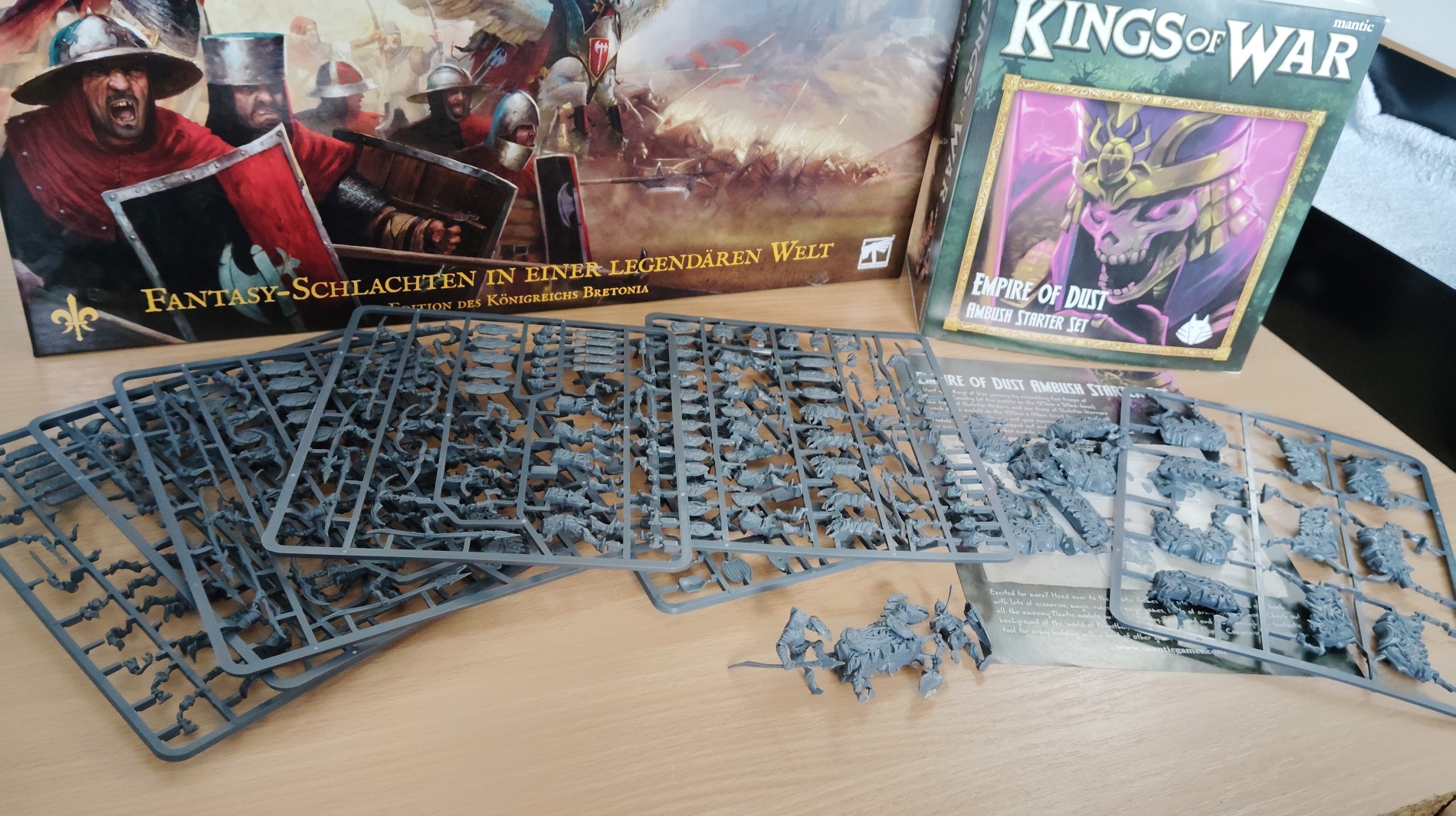 Kings of War / Empire of Dust Ambush Starter Set 20. Januar 2024, 23:27 Hallo, ich verkaufe ein Kings of War, Empire of Dust Ambush Starter Set. Bis auf einen Reiter + Pferd und ein Infanterie Modell ist noch alles im Gußrahmen. Kein Einzelverkauf! Wer Interesse hat, bitte mich per PN anschreiben. Warhammer Age of Sigmar Ossiarch Bonereapers: 2740 / Soulblight Gravelords: 2780 / Seraphon: 5500 / Flesh Eater Courts: 8510 Warhammer 40K Tyraniden: 4110 / Imperial Knights: 2500