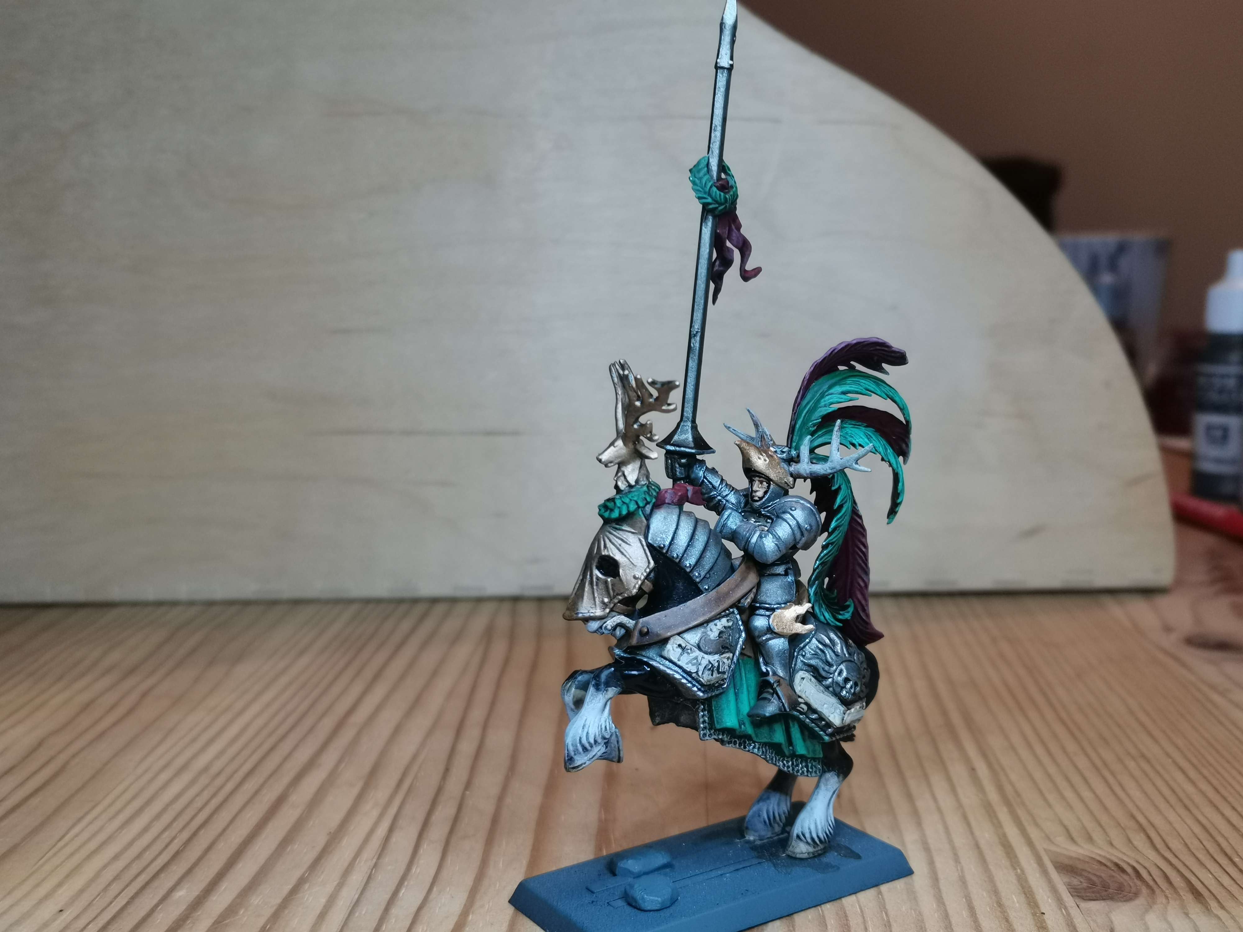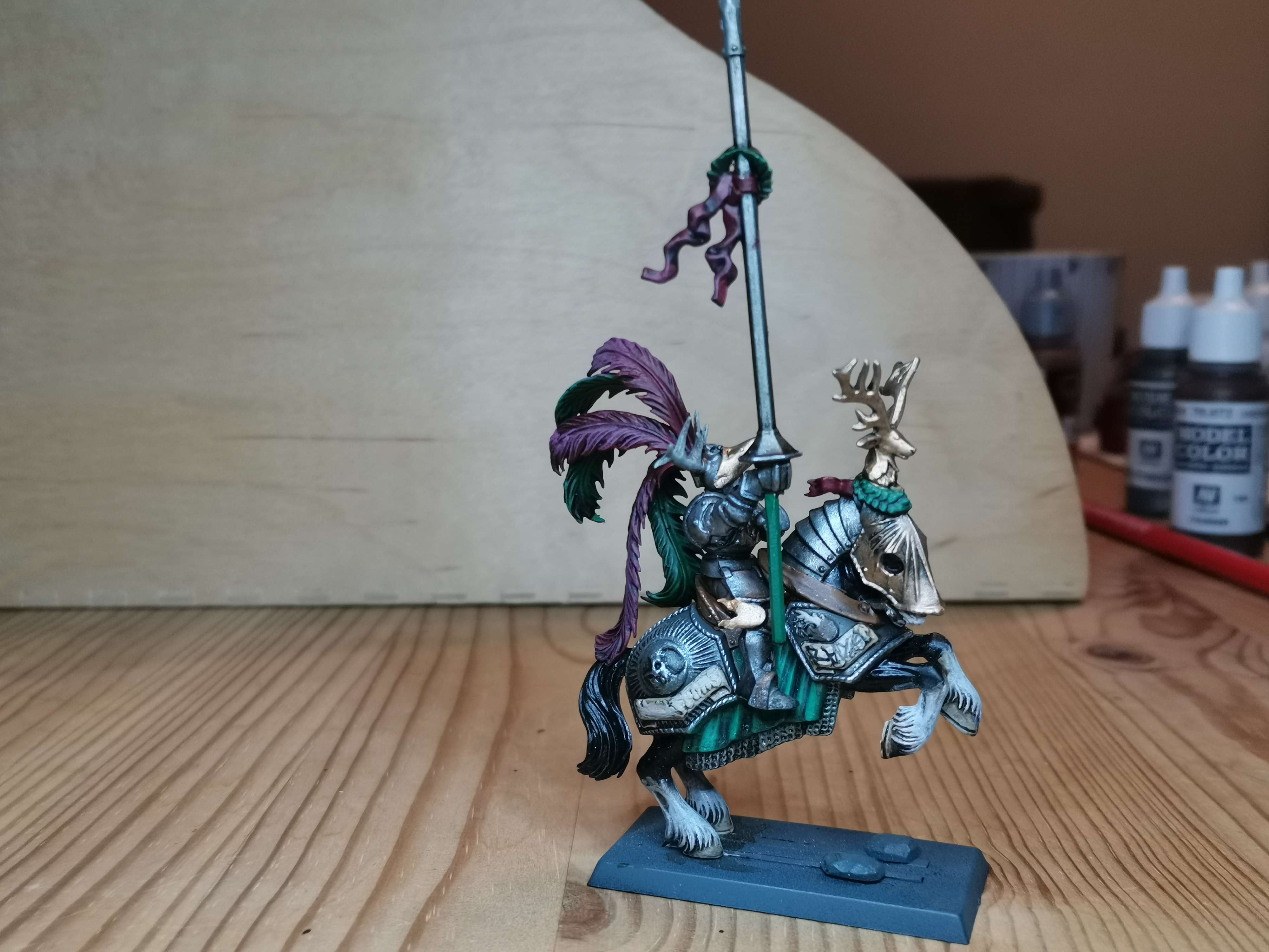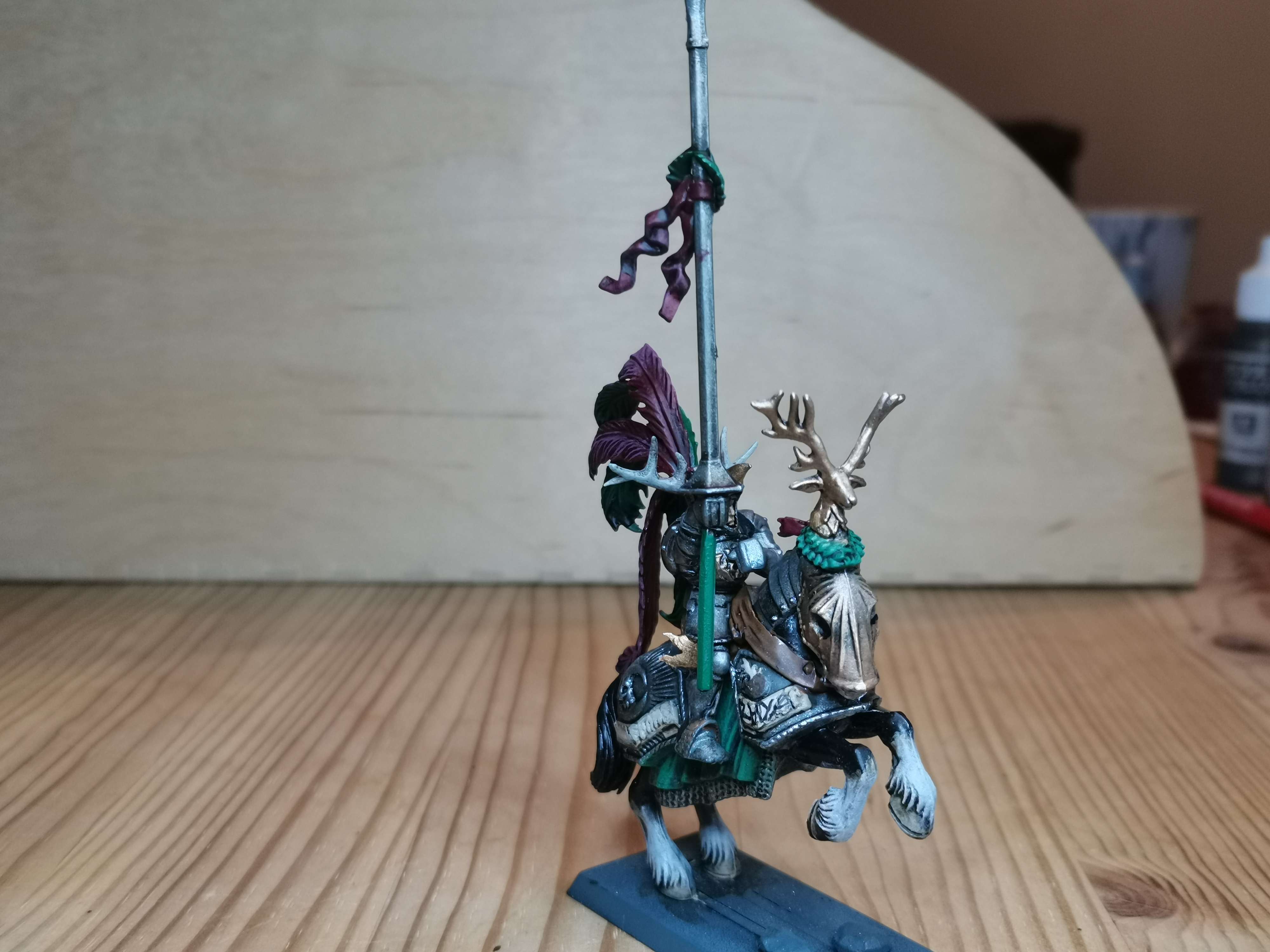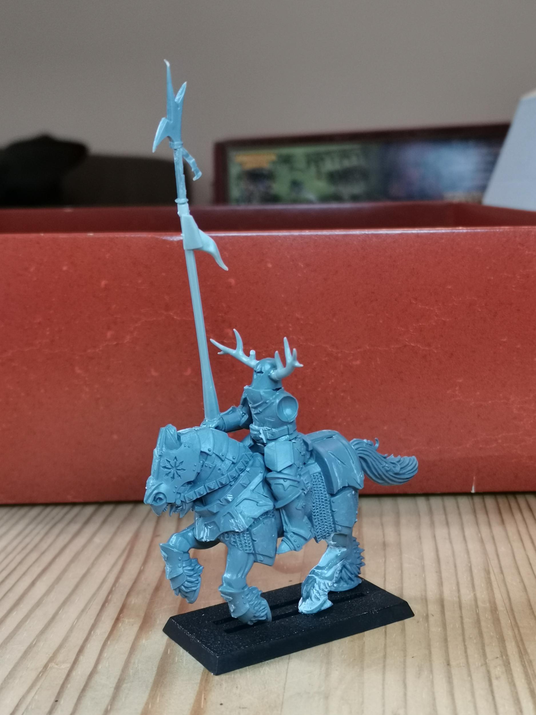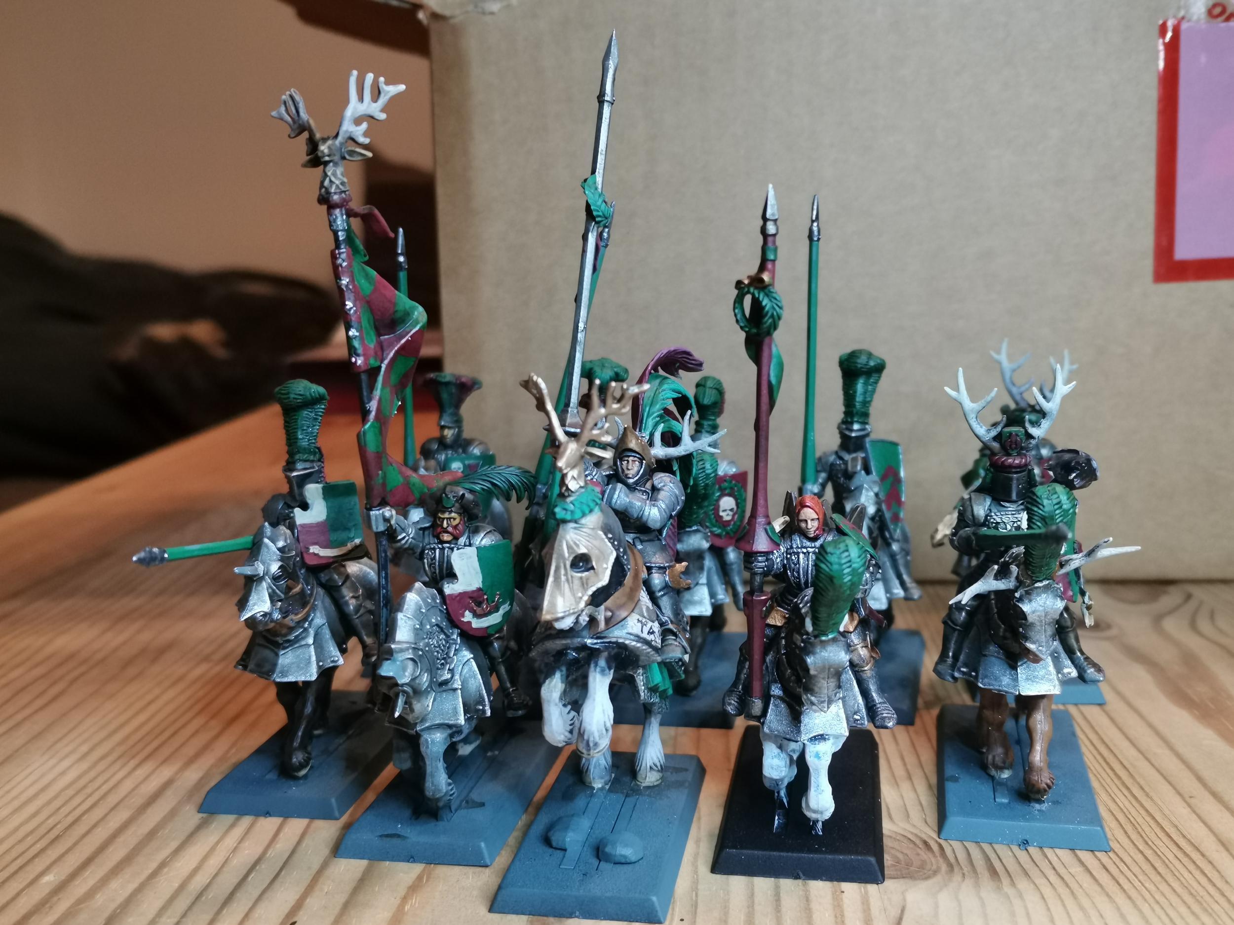 Für meine Talabeclandarmee wollte ich einen eigenen Ritterorden haben der gut zum Thema passt. Es gibt zwar den Sonnenorden in Talabheim aber der war mir nicht urig genug für mein Thema. Also hab ich ein wenig im Lore gestöbert und die Ritter des Hirschen gefunden. Außer das es sie gibt, sie nicht wie ein normaler Orden organisiert sind und sich mit den anderen Orden nicht sonderlich gut verstehen gibts keine Infos über sie. Perfekt also um daraus was eignes zu machen.