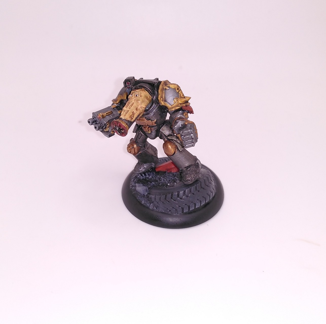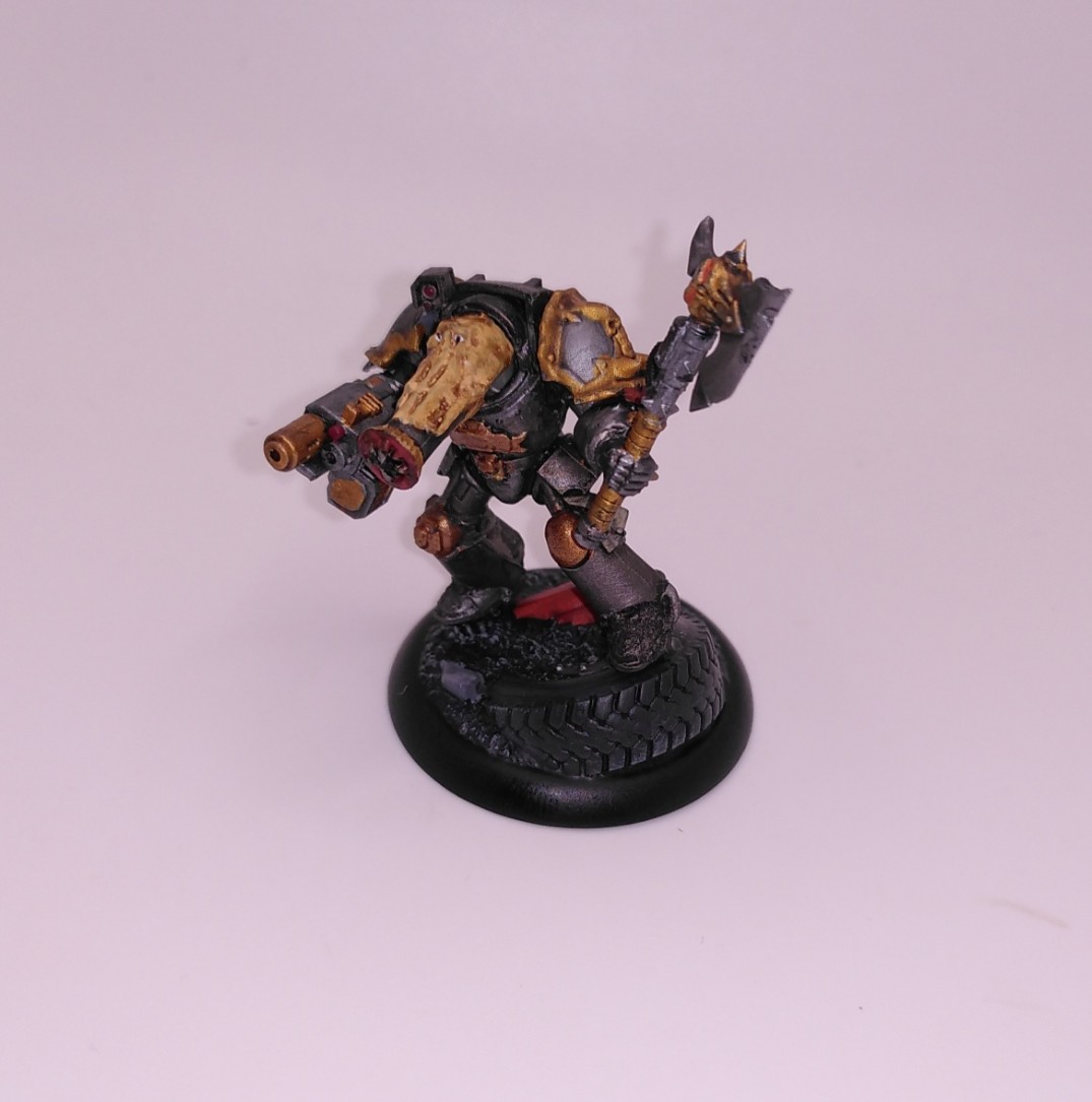 Iron Warriors Terminatorchampion - schön magnetisiert. Und weil die Chaosgötter nen komischen Humor haben ist sein Kopf mutiert - hat was von nem Ameisenbär